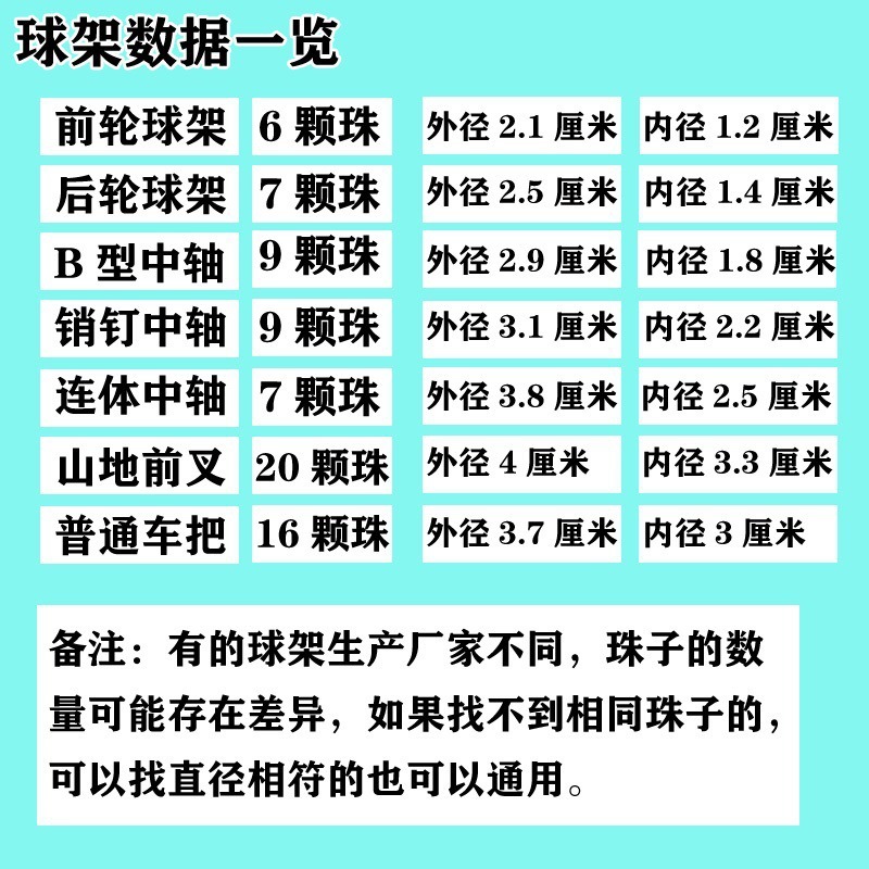 | Colores | Un par de mantequilla en el soporte de cuentas del eje central de la rueda delantera [diámetro exterior 2,1 cm],Dos pares de mantequilla en el soporte de cuentas del eje central de la rueda delantera [diámetro exterior 2,1 cm],Tres pares de mantequilla en el marco de cuentas del eje central de la rueda delantera [diámetro exterior 2,1 cm],Un par de mantequilla en el soporte de cuentas del eje central de la rueda trasera [diámetro exterior 2,5 cm],Dos pares de mantequilla en el soporte de cuentas del eje central de la rueda trasera [diámetro exterior 2,5 cm],Tres pares de mantequilla en el marco de cuentas del eje central de la rueda trasera [diámetro exterior 2,5 cm],Un par de mantequilla con soporte de cuentas de eje central tipo B [diámetro exterior 2,9 cm],Marco de cuentas de eje central tipo B con dos pares de mantequilla [diámetro exterior 2,9 cm],Marco de cuentas de eje central tipo B con tres pares de mantequilla [diámetro exterior 2,9 cm],Un par de mantequilla en el soporte de cuentas del eje central del pasador [diámetro exterior 3,1 cm],Dos pares de mantequilla con soporte de cuentas de eje central para pasadores [diámetro exterior 3,1 cm],Tres pares de mantequilla con soporte de cuentas de eje central para pasadores [diámetro exterior 3,1 cm],Un par de mantequilla con soporte de cuentas de eje central de una pieza [diámetro exterior 3,8 cm],Dos pares de mantequilla con soporte de cuentas de eje central de una pieza [diámetro exterior 3,8 cm],Tres pares de mantequilla con soporte de cuentas de eje central de una pieza [diámetro exterior 3,8 cm],Un par de mantequilla en el estante de cuentas de la horquilla delantera ordinaria [diámetro exterior 3,7 cm],Dos pares de mantequilla en el estante de cuentas de la horquilla delantera ordinaria [diámetro exterior 3,7 cm],Tres pares de mantequilla en el estante de cuentas de la horquilla delantera ordinaria [diámetro exterior 3,7 cm],Un par de mantequilla en el soporte de cuentas para bicicleta de montaña [diámetro exterior 4 cm],Dos pares de mantequilla con soporte de cuentas para bicicleta de montaña [diámetro exterior 4 cm],Tres pares de mantequilla con soporte de cuentas para bicicleta de montaña [diámetro exterior 4 cm] |