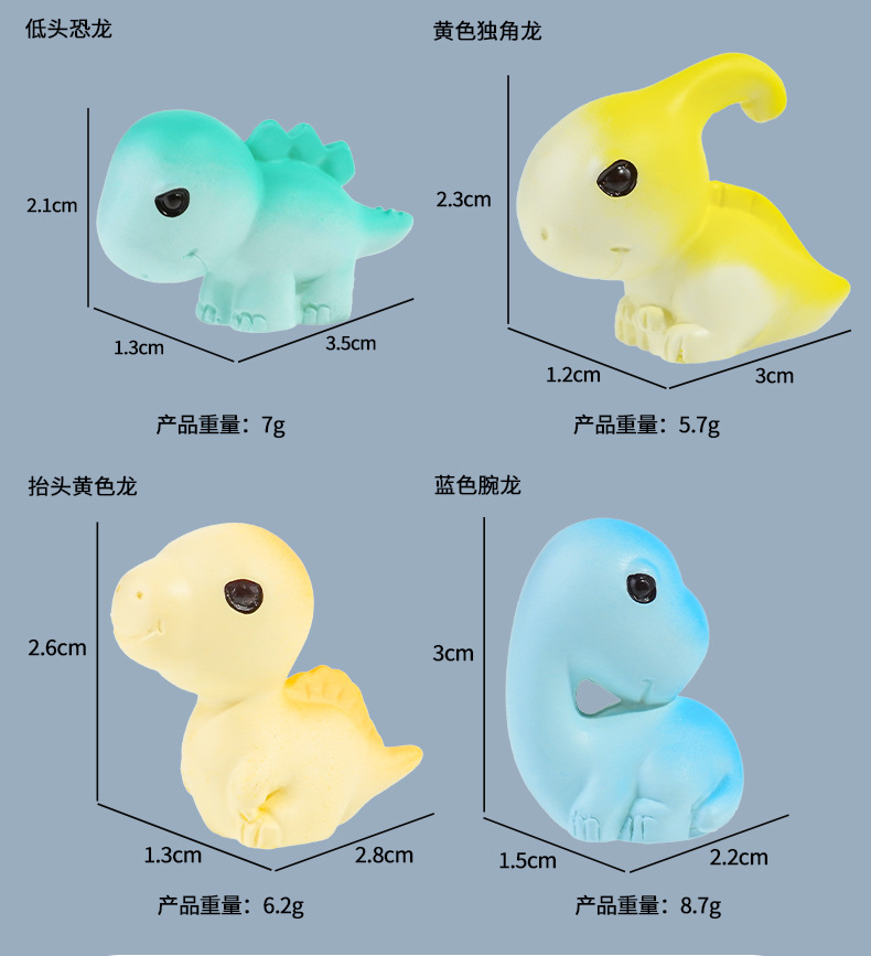 | Colores | Triceratops,Dragón giratorio naranja,Dragón alas verdes,Dragón sentado rosa,Inclinando a los dinosaurios,Unicornio amarillo,Mirando hacia arriba dragón amarillo,Brachiosaurus azul |