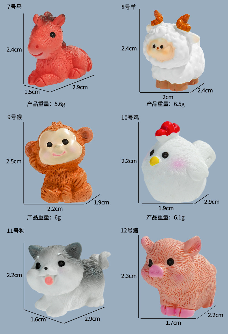 | Colores | Rata No. 1,Vaca número 2,Tigre No. 3,Conejo No. 4,Dragón 5,Serpiente No. 6,Caballo 7,Oveja No. 8,Mono No. 9,Pollo No. 10,Perro número 11,Cerdo No. 12 |