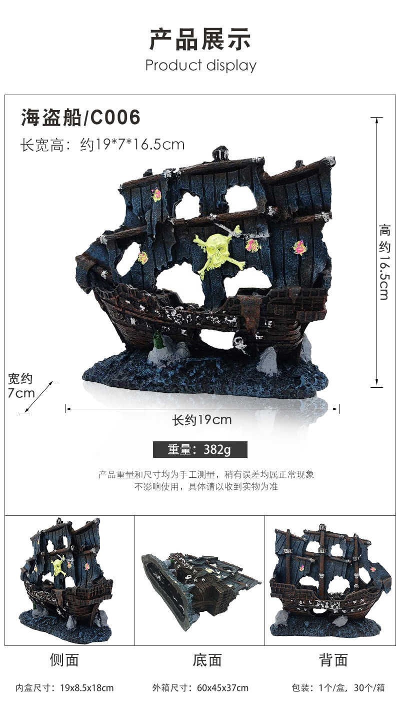| Categoría de producto | Escenografía de pecera artesanal de resina de naufragio |