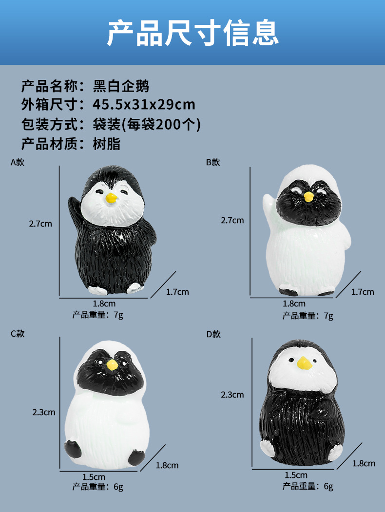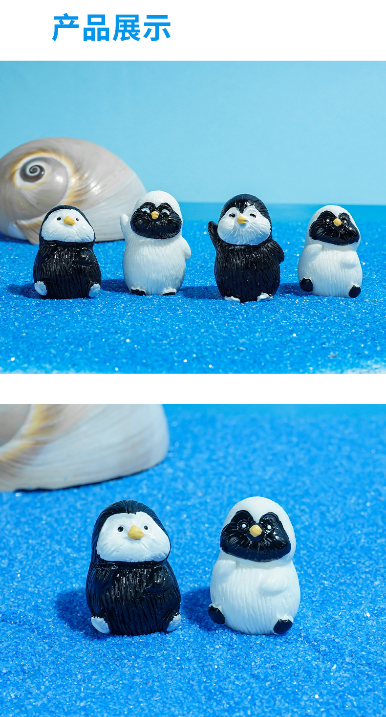 Micro paisaje de musgo decoración de escena de nieve nuevo lindo pingüino blanco y negro resina de pingüino adorno de animales de dibujos animados con