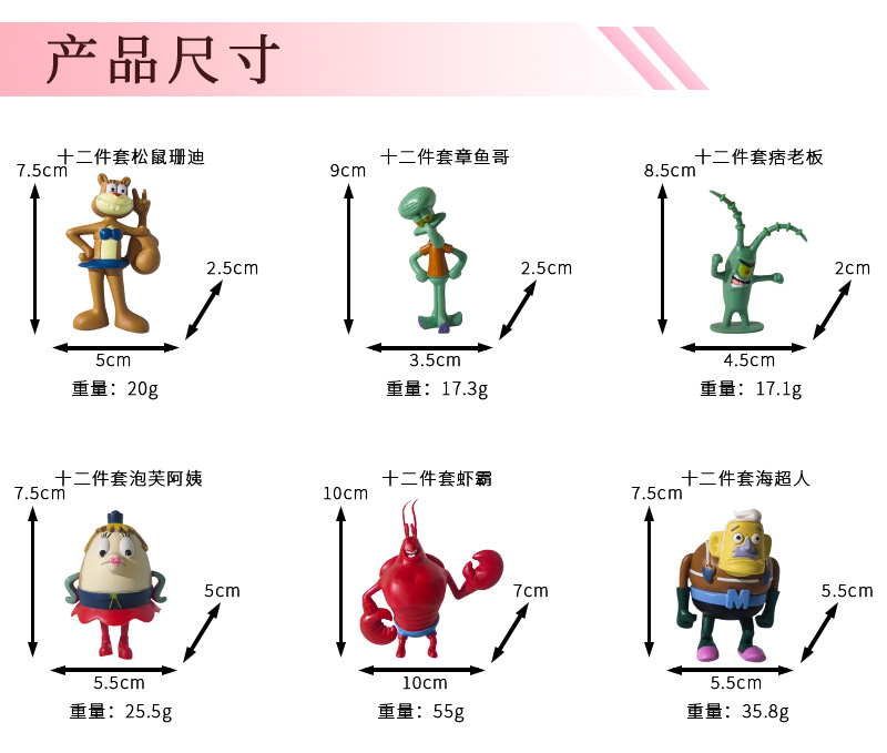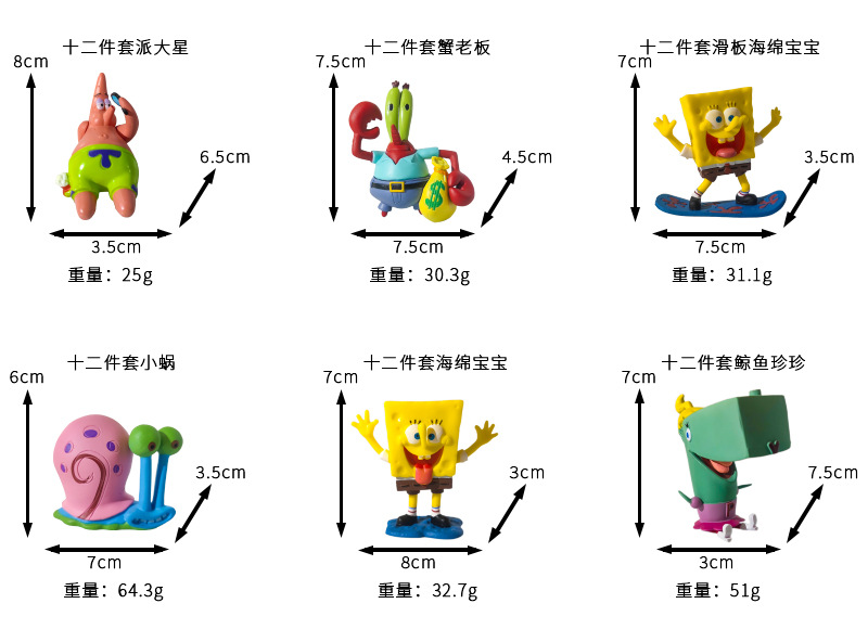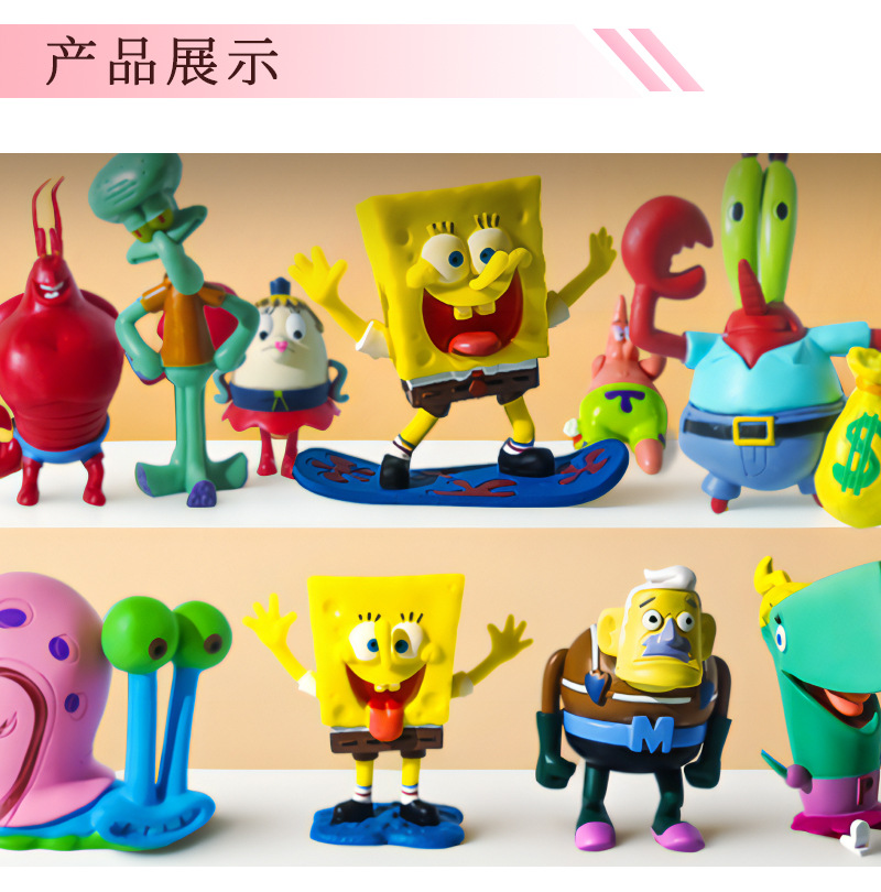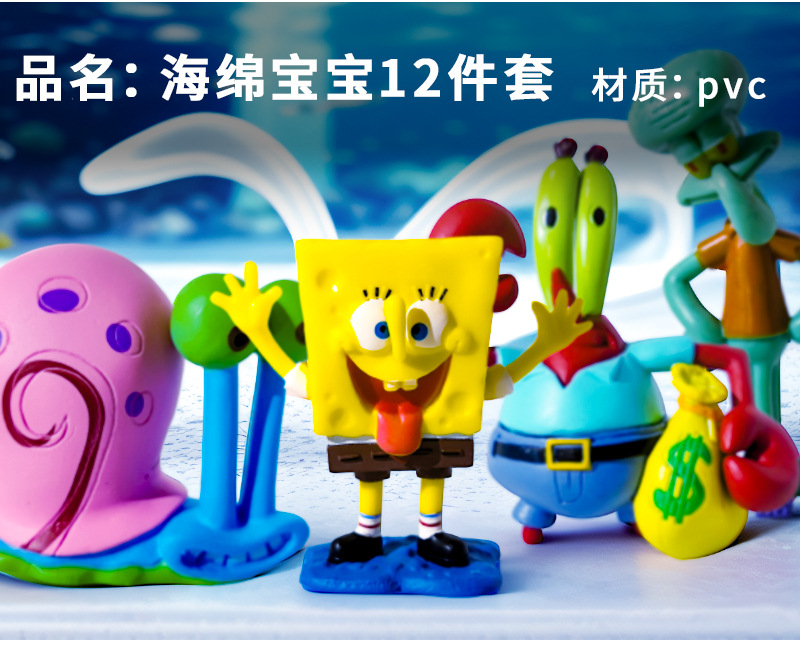Nuevo producto 12 lindo cangrejo fuerte esponja juego de marea decoración acuario decoración dibujos animados Bob Esponja pastel estrella