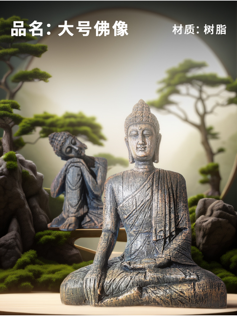 Estatua de Buda acuario paisaje decoración resina decoración creativa nueva sala de estar China gran estatua de Buda decoración pasillo Decoración