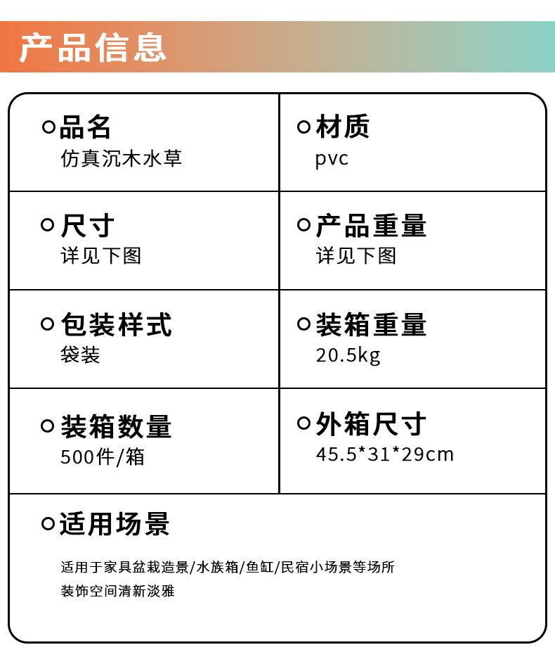 | Especificaciones | N ° 1 plantas acuáticas de madera sumergida,No. 2 plantas acuáticas de madera sumergida,N ° 3 plantas acuáticas de madera sumergida,N ° 4 plantas acuáticas de madera sumergida |