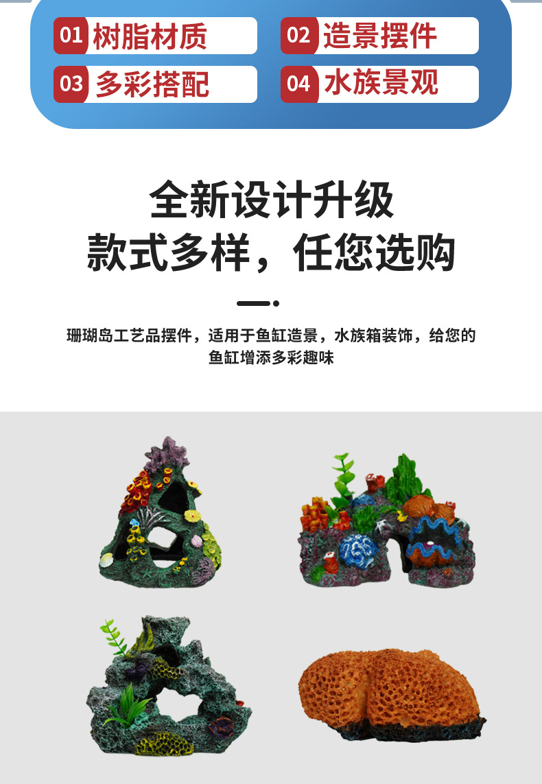 Paquete de decoración de paisajismo acuario isla de coral concha barril rocalla simulación de resina hierba acuática montaña coral