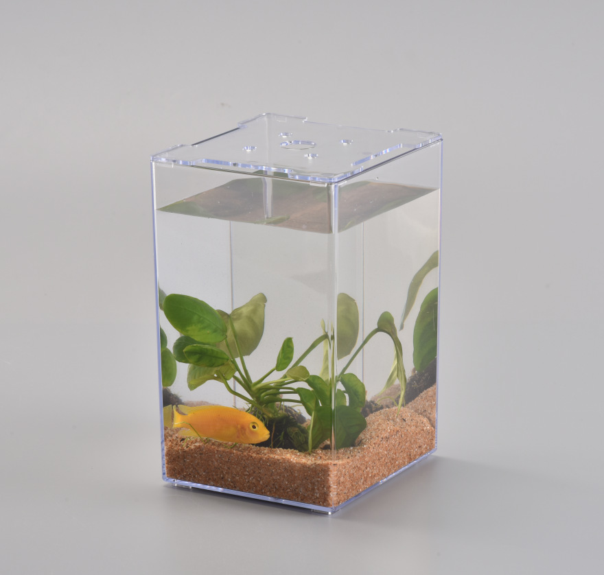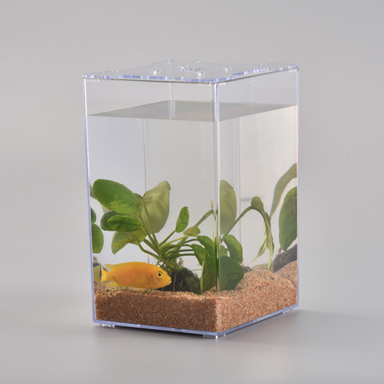 Tanque de peces de escritorio engrosado transparente Tailandia cubo tanque de peces acrílico plástico transparente Goldfish ecológico medusas tanque pequeño