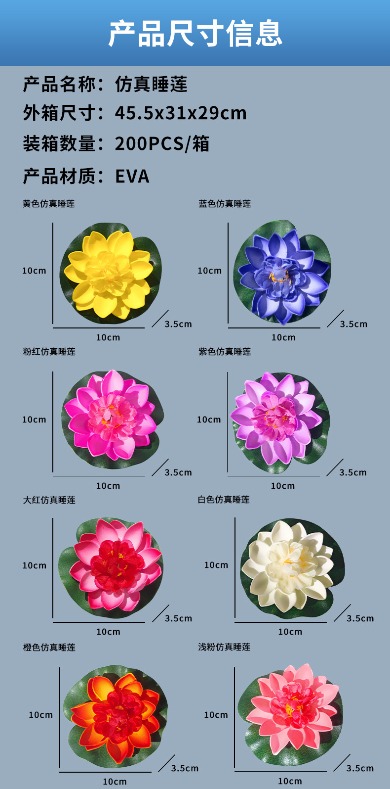 | Especificaciones | Lirio de agua de simulación blanca,Lirio de agua de simulación naranja,Lirio de agua de simulación rosa,Lirio de agua de simulación roja,Lirio de agua de simulación púrpura,Lirio de agua de simulación de polvo claro,Lirio de agua de simulación amarillo,Lirio de agua de simulación azul |