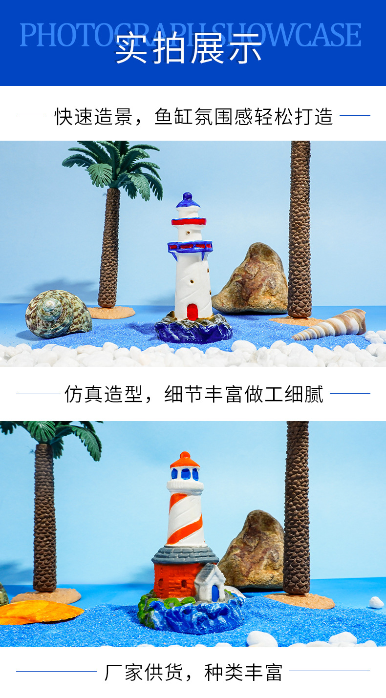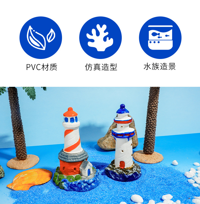 Guía de PVC faro paisaje decoración micro estilo mediterráneo pecera Marina pequeña escena artesanía creativa
