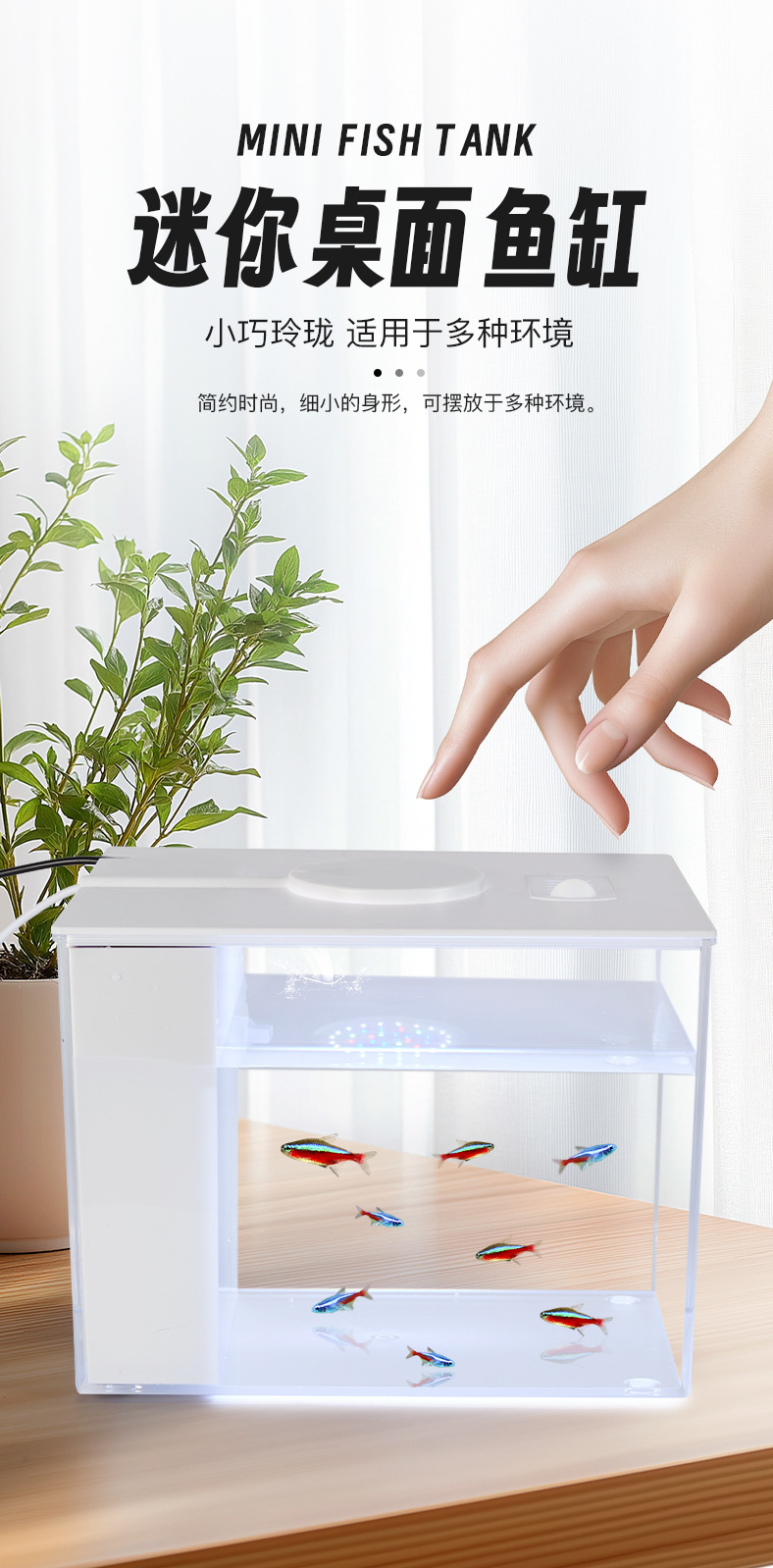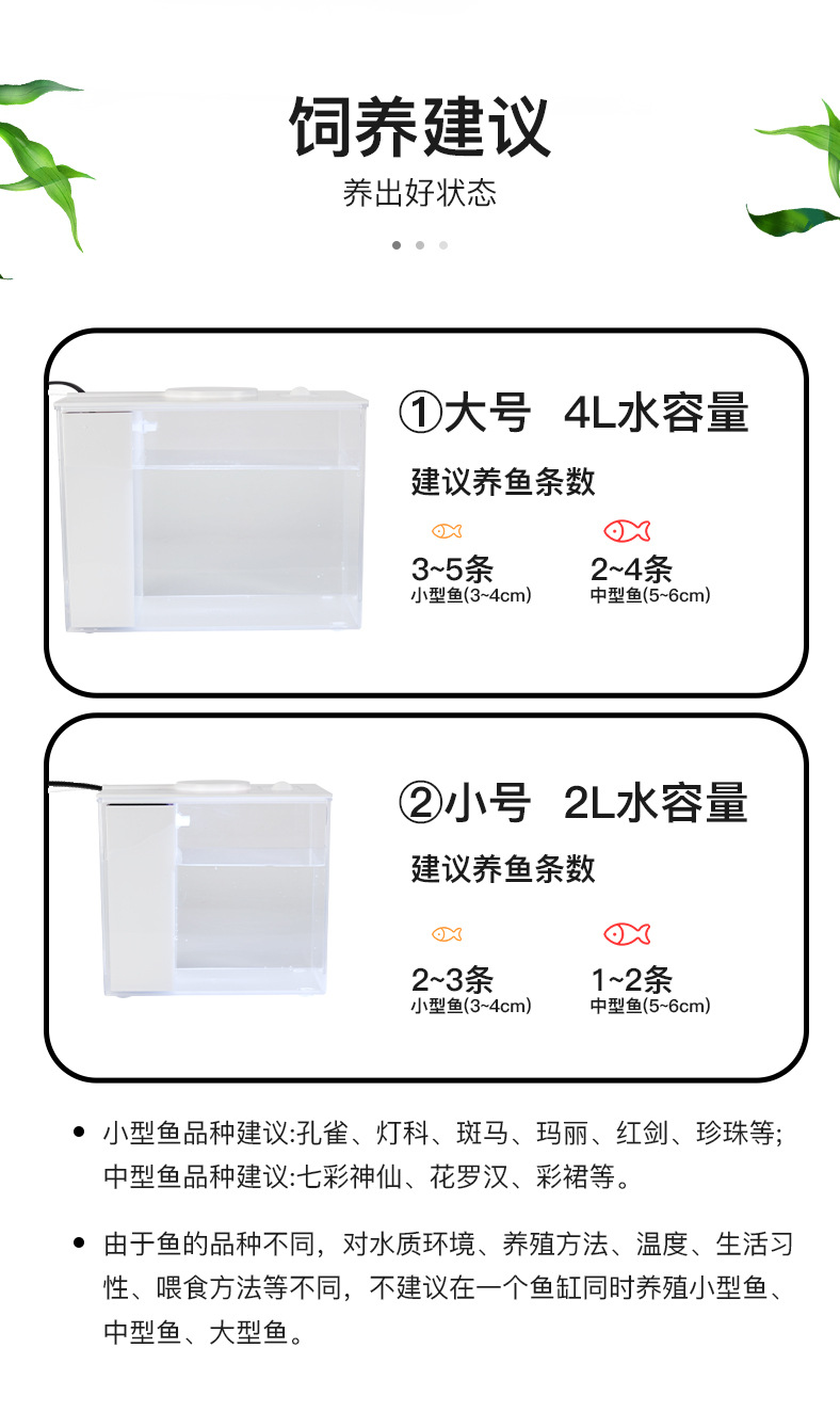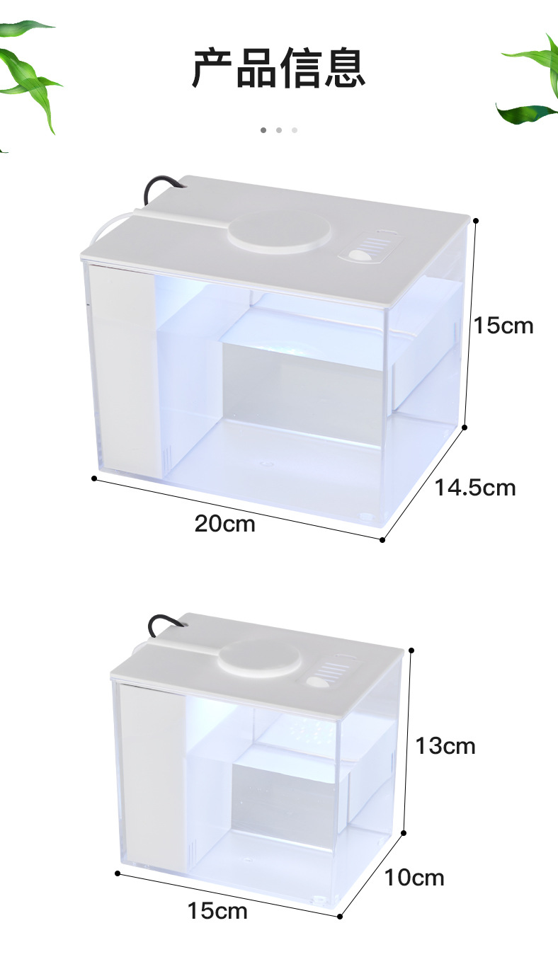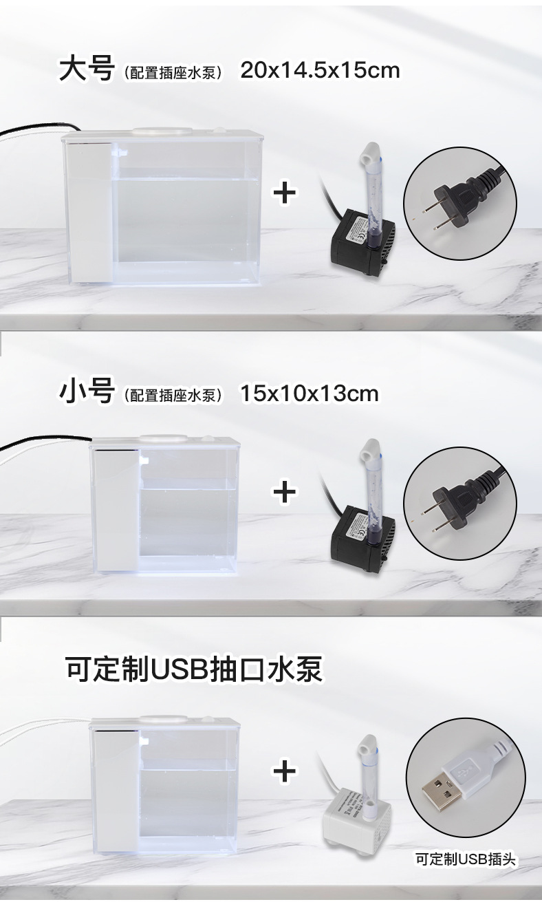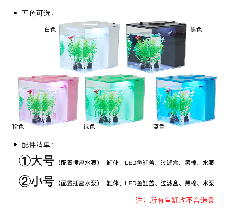 | Colores | Pecera de escritorio pequeña (luz que cambia de color con filtro trasero),Pecera de escritorio grande (luz que cambia de color con filtro trasero) |