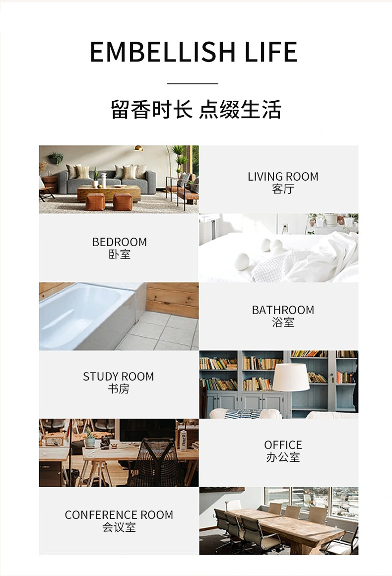 | Tamaño | Viento del mar,Rosas,Flor de naranja,Ciruela,Campana de viento azul,Oolong melocotón blanco,Lavanda,Pera y fresia,Sándalo,Gardenia |
