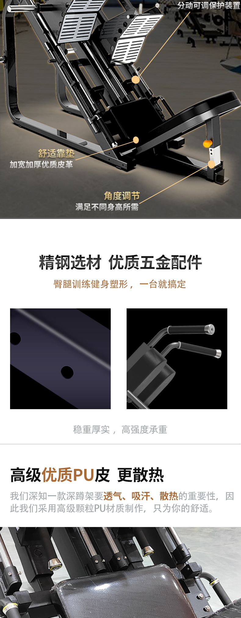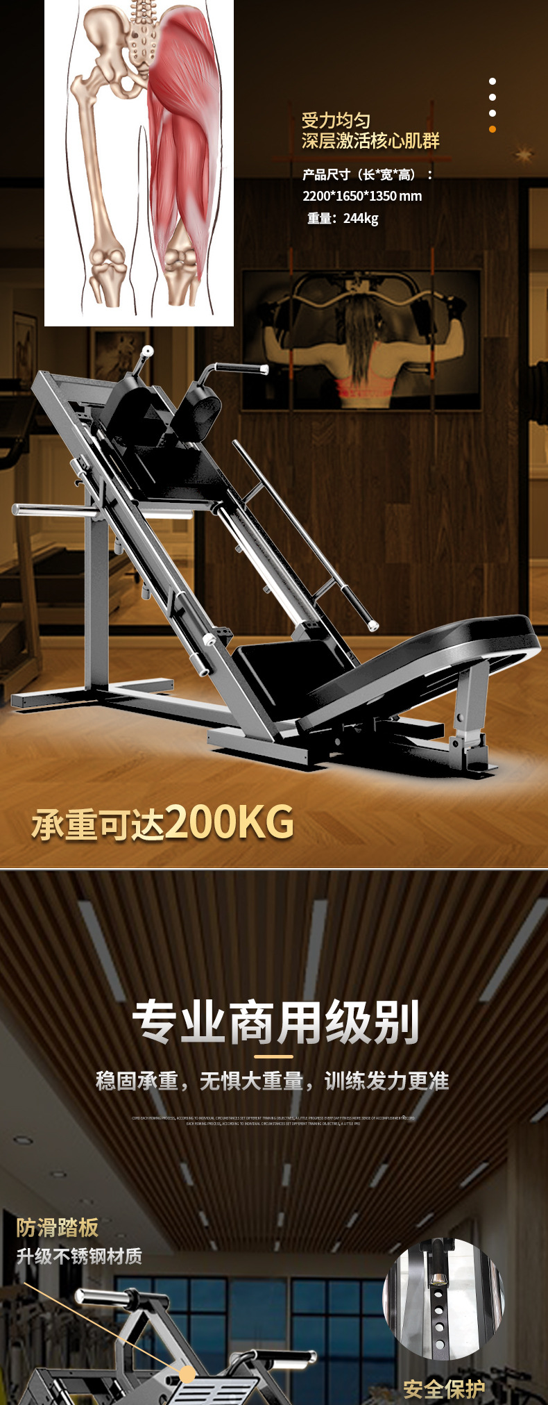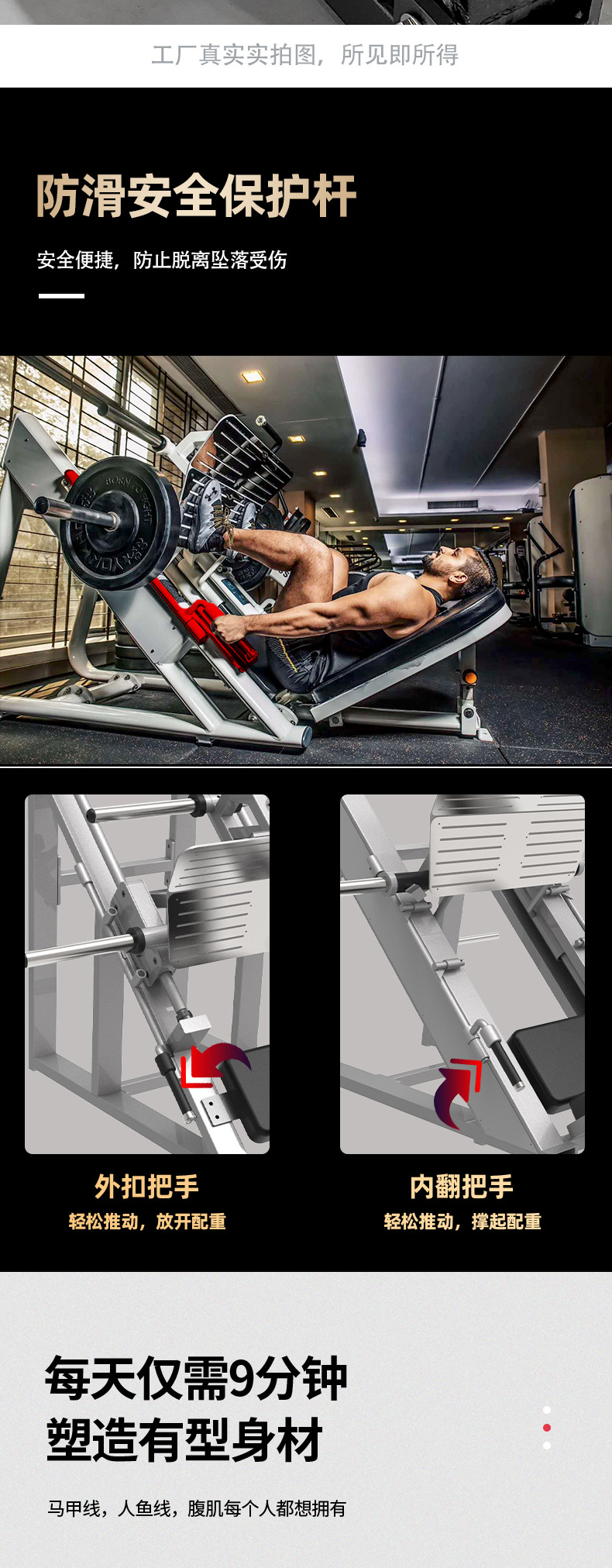Gimnasio Dispositivo comercial de entrenamiento de fuerza de piernas Máquina de sentadilla invertida de 45 grados