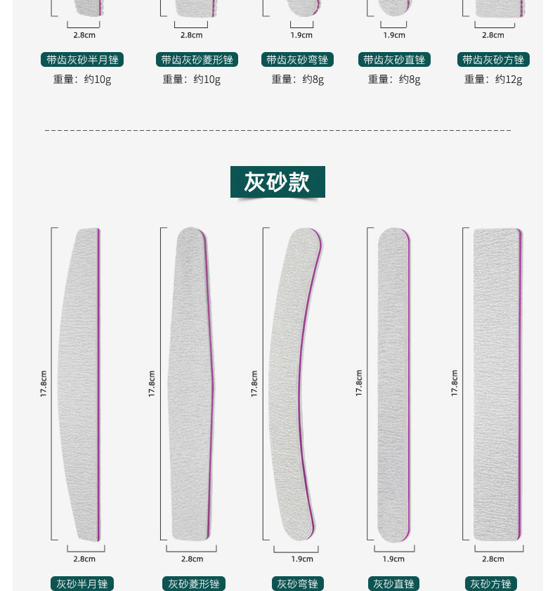 | Clasificación de colores | Lima corta de arena gris,Lima recta de arena gris,Lima de diamante de arena gris,Lima de media luna de arena gris,Lima curva de arena gris,Lima cuadrada de arena gris,Lima recta con arena de ceniza dentada (hoja de caucho 1.5 engrosada),Lima de diamante de arena gris con dientes (hoja de caucho 1.5 engrosada),Lima de media luna de arena gris dentada (hoja de caucho 1.5 engrosada),Lima curva de arena gris con dientes (hoja de caucho 1.5 engrosada),Lima cuadrada de arena gris con dientes (hoja de caucho 1.5 engrosada) |