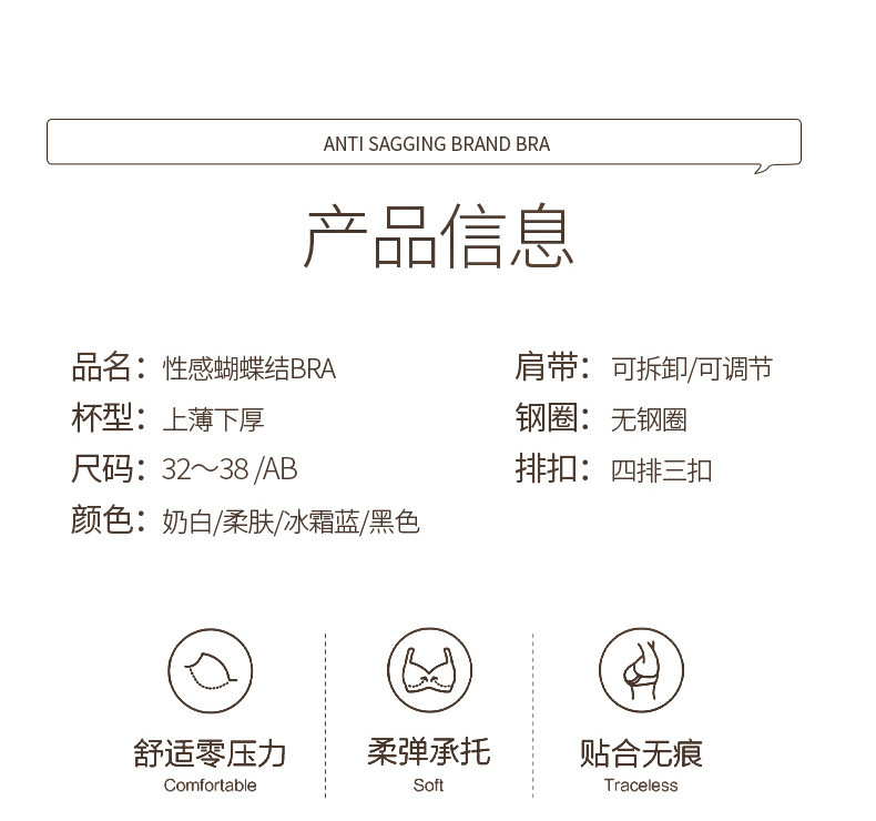 | Función | Reunir,Sin rastro,Transpirable,En el apoyo,Hermoso respaldo,Tipo de ajuste,Cómodo,Recibación lateral,Tetas |