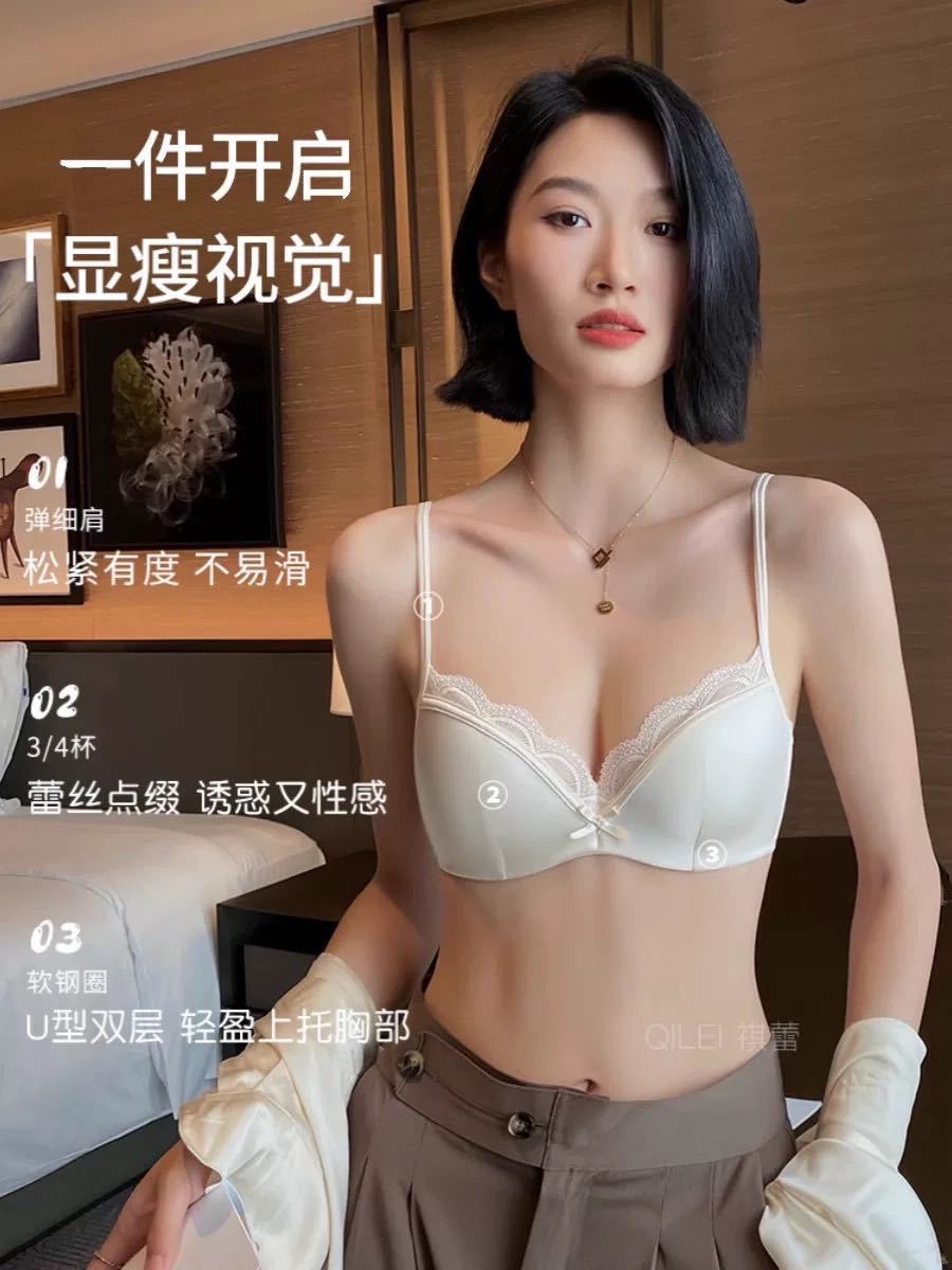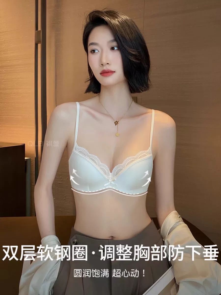 Ropa interior de niña pecho pequeño empuje hacia arriba ajuste anti-expansión externa soporte superior Delgado inferior grueso sujetador inalámbrico de encaje sujetador de soporte de pecho