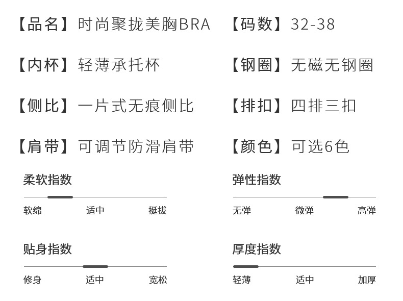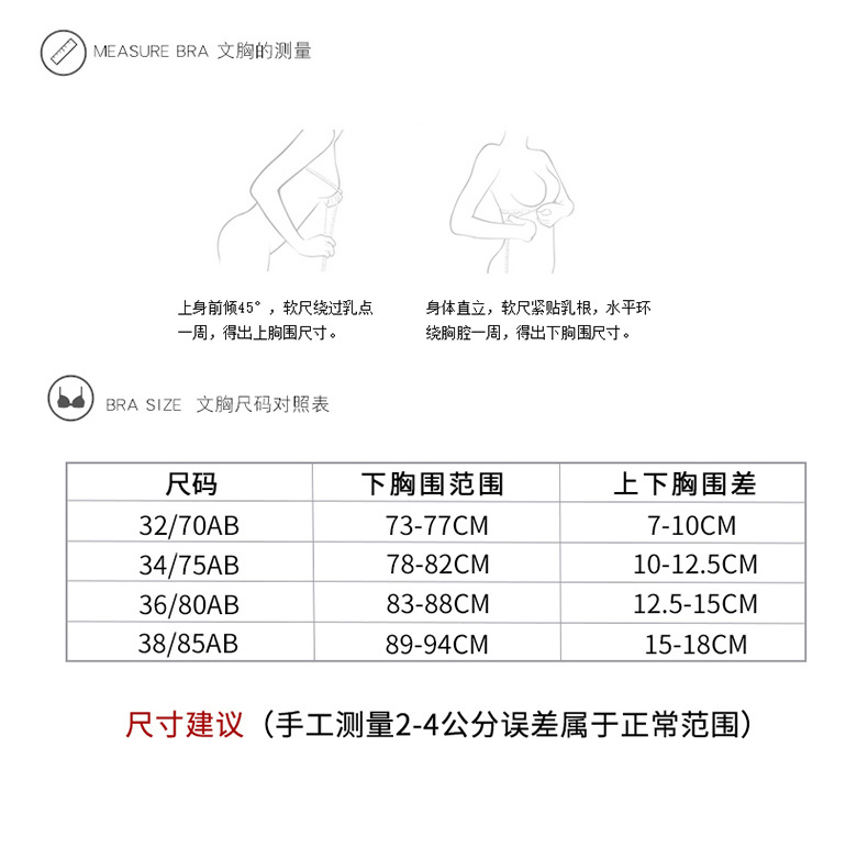 | Función | Sin rastro,Transpirable,En el apoyo,Cómodo,Recibación lateral,Tetas,Pechos grandes y pequeños |