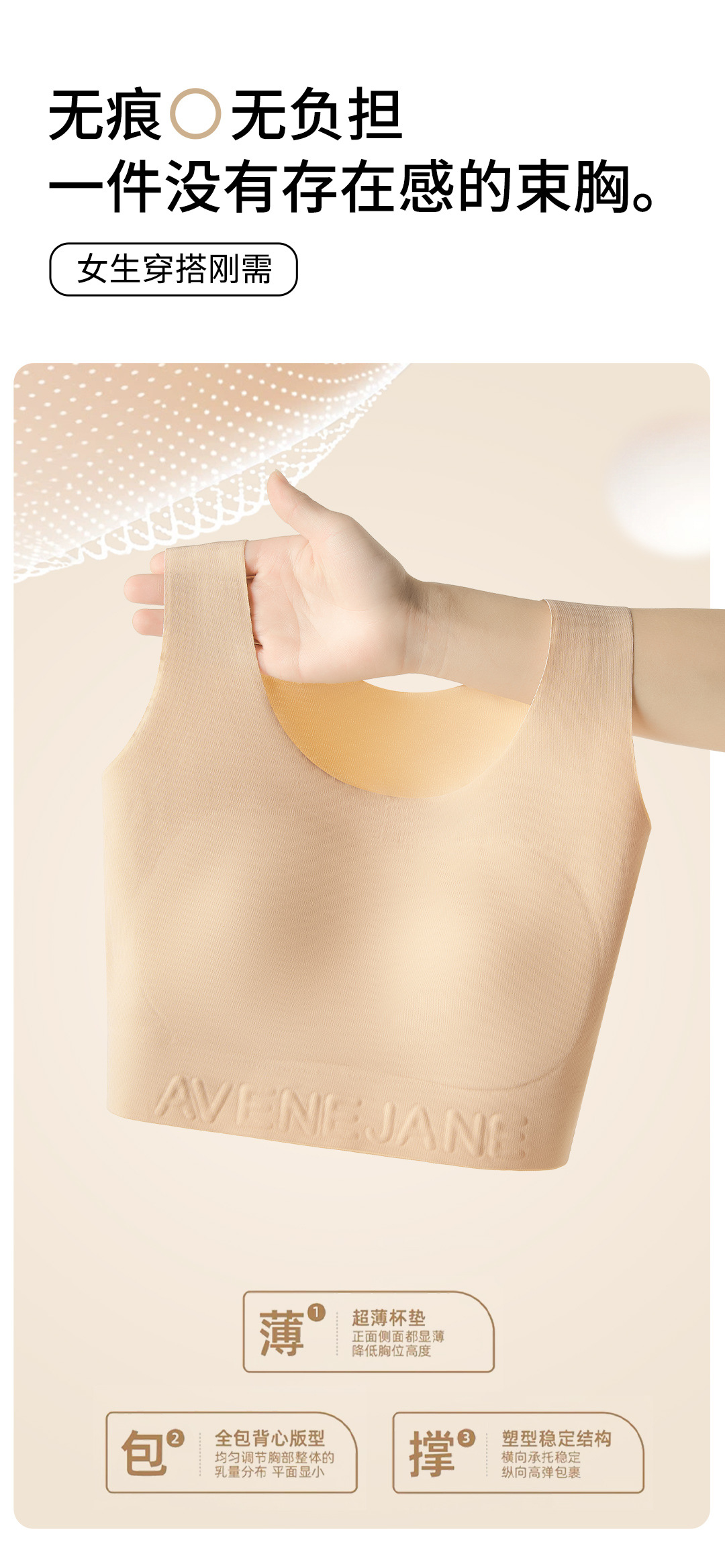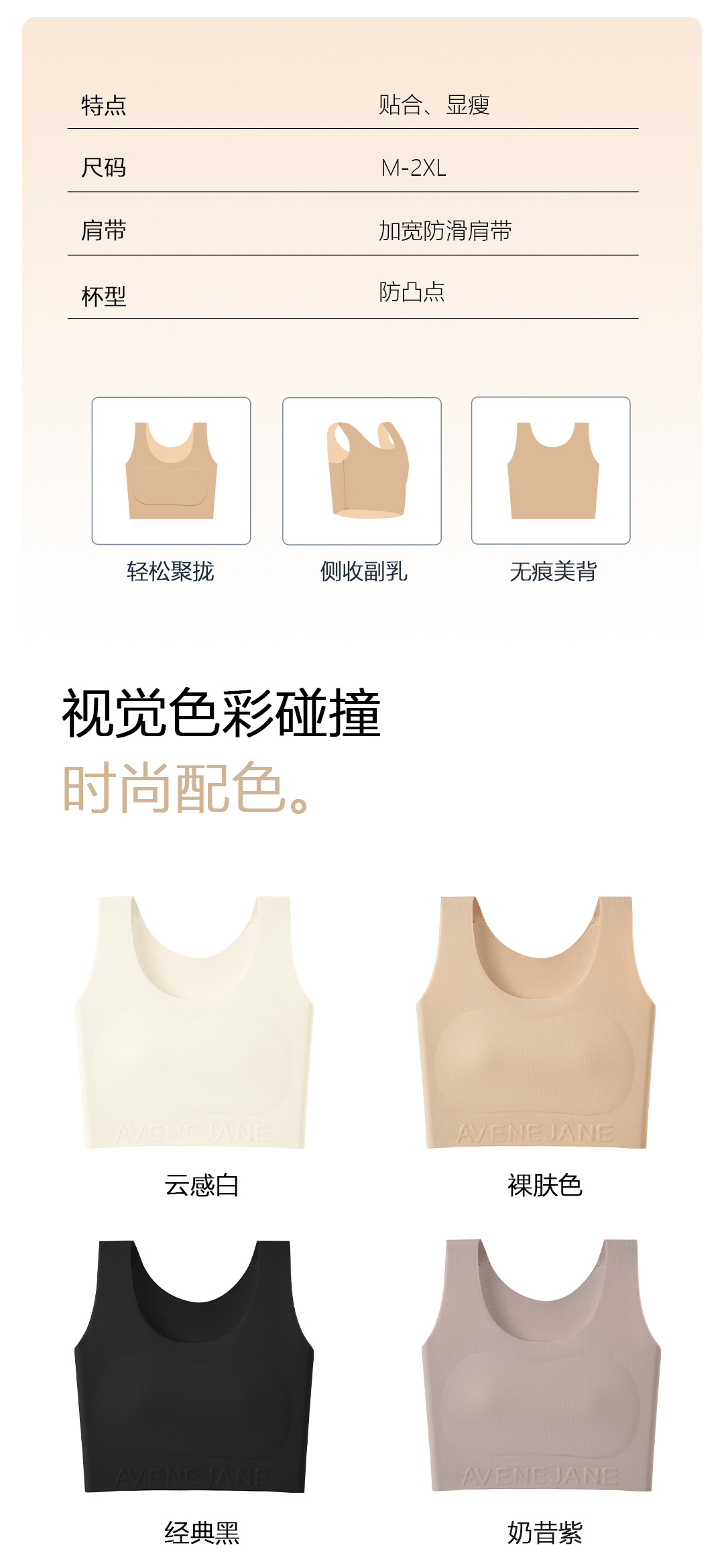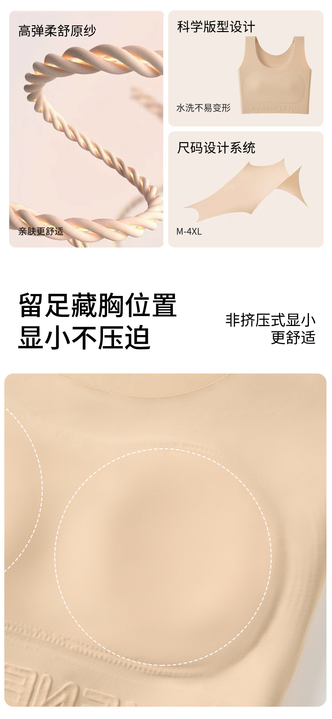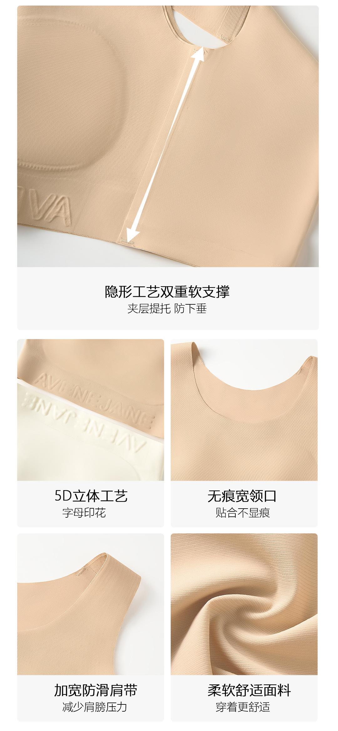 | Función | Sin rastro,Transpirable,En el apoyo,Cómodo,Recibación lateral,Tetas,Pechos grandes y pequeños |
