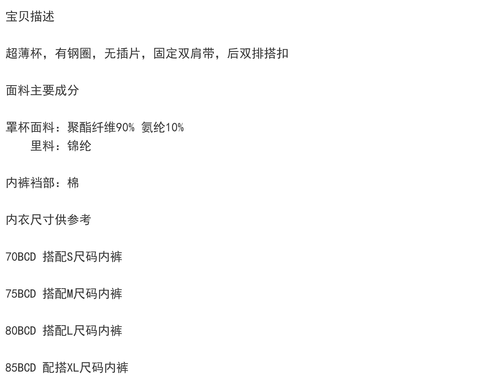 | Función | Reunir,Sin traceless,Transpirable,Soporte superior,Belleza de vuelta,Tipo ajustable,Cómodo,Cierre lateral,Colección de pechos,El pecho grande te hace parecer más pequeño |