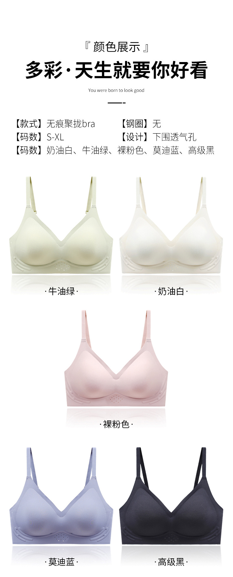 | Tamaño | S [32/70ABC adecuado para menos de 100 Jin],M [34/75ABC adecuado para 50,00 kg-57,50 kg],L [36/80ABC adecuado para 57,50 kg-65,00 kg],XL [38/85ABC adecuado para 65,00 kg-72,50 kg] |