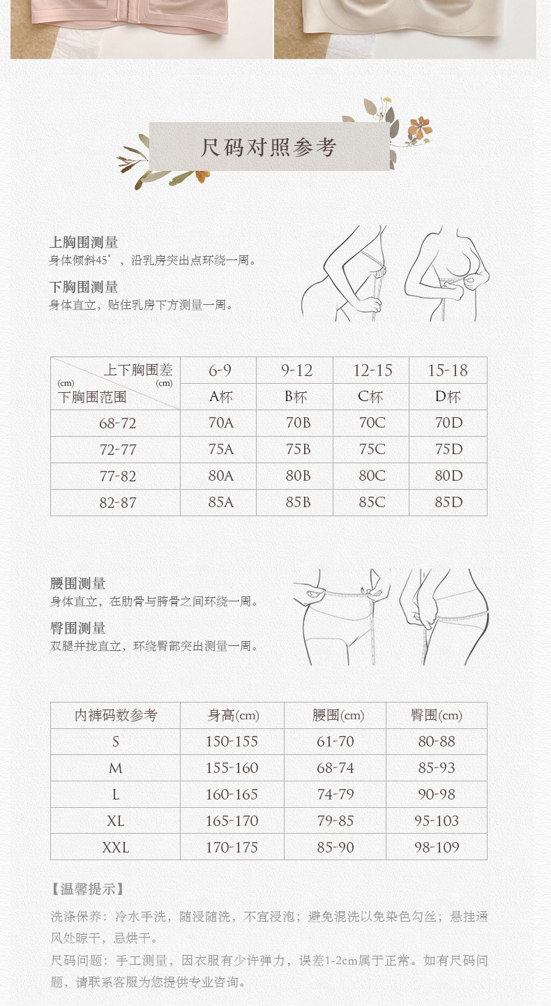 | Tamaño | M (70BC/75ABC recomendado),L (80ABC/85A recomendado),XL (85BC/90A recomendado) |