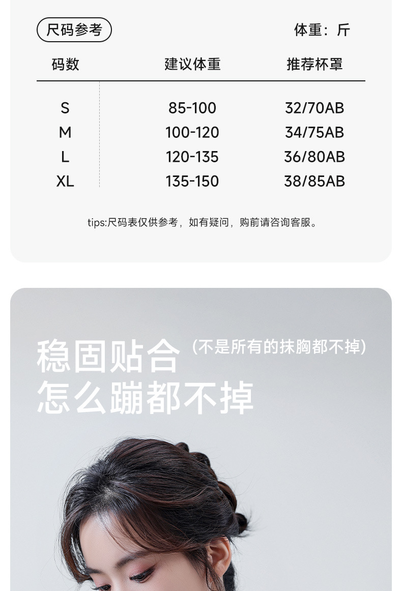 | Talla | S [Recomendación 32/70ABC],M [Recomendación 34/75ABC],L [Recomendación 36/80ABC],XL [Recomendación 38/85ABC] |