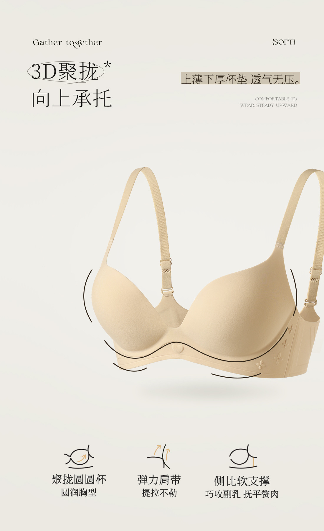 | Función | Sin rastro,Transpirable,En el apoyo,Cómodo,Recibación lateral,Tetas,Pechos grandes y pequeños |