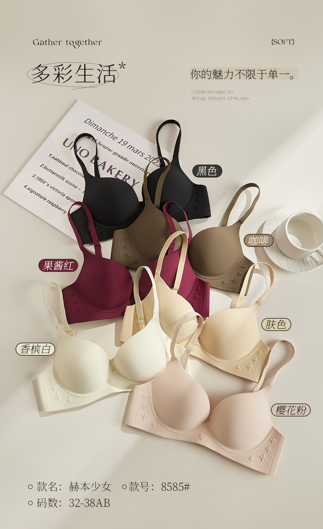 | Colores | Negro,Café,Mermelada roja,Champagne blanco,Color de la piel,Polen de cerezo |