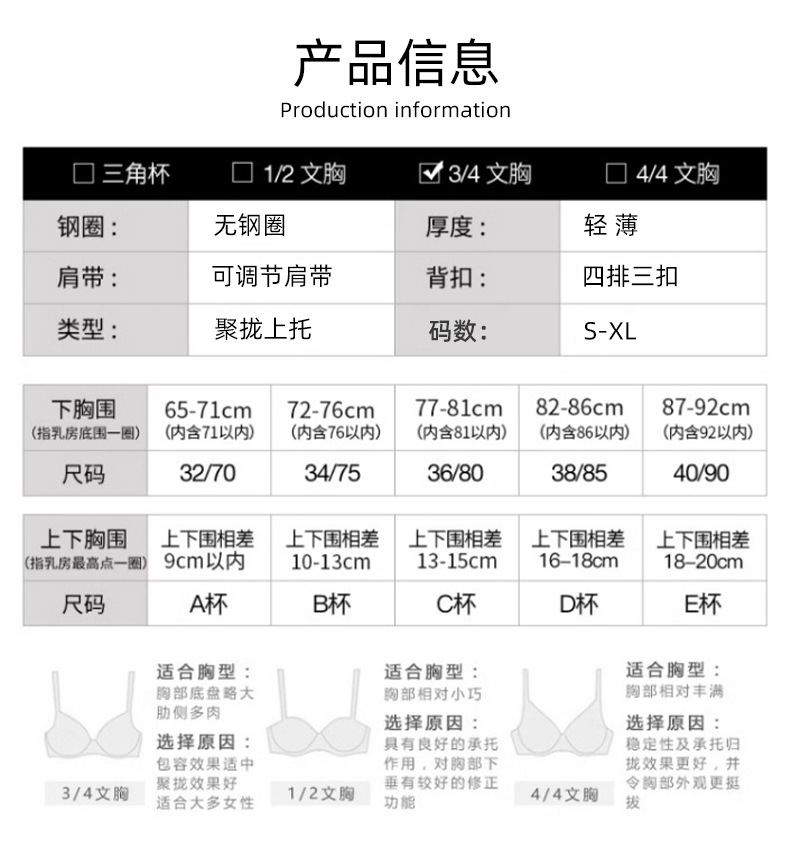 | Función | Sin rastro,Transpirable,En el apoyo,Cómodo,Recibación lateral,Tetas,Pechos grandes y pequeños |