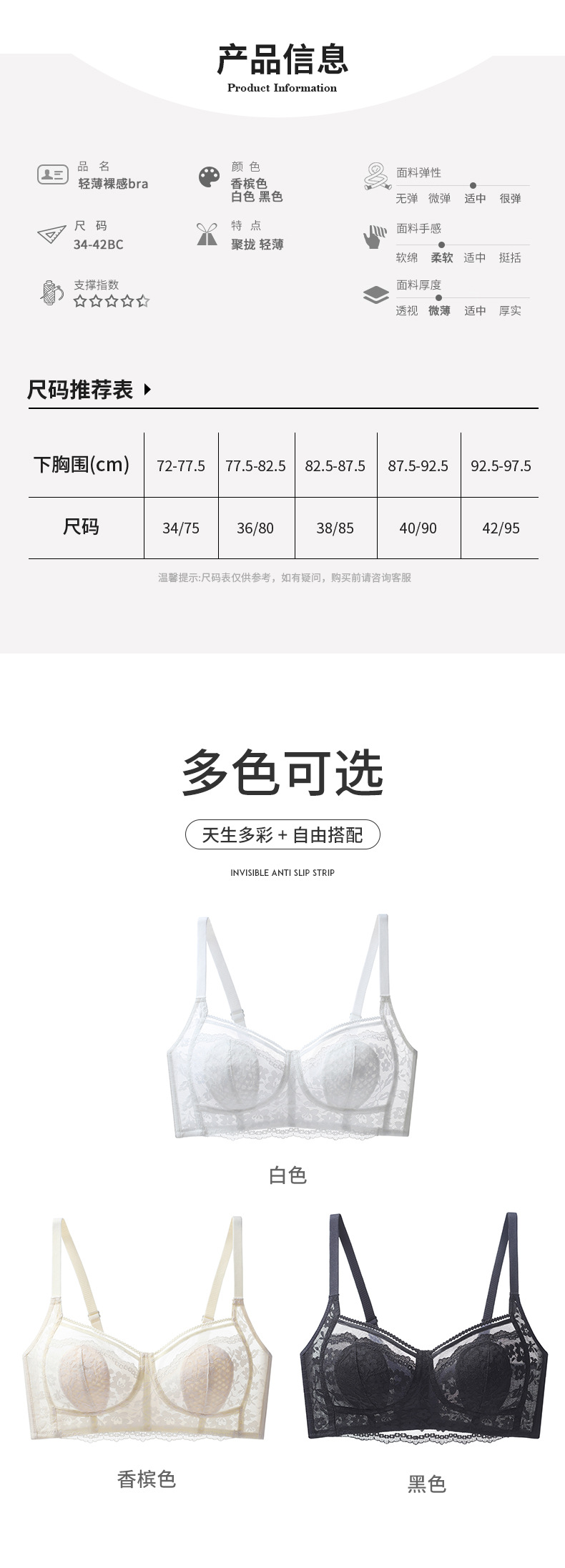| Tamaño | 34/75B,34/75C,36/80B,36/80C,38/85B,38/85C,40/90B,40/90C,42/95B,42/95C |