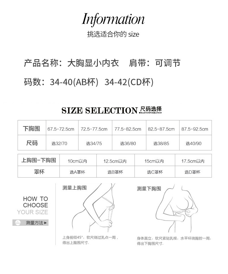 | Tamaño | 34/75A,34/75B,34/75C,34/75D,36/80A,36/80B,36/80C,36/80D,38/85A,38/85B,38/85C,38/85D,40/90A,40/90B,40/90C,40/90D |
