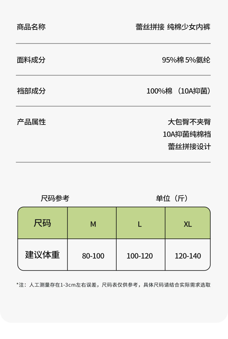 | Composición del forro de la entrepierna | Algodón |