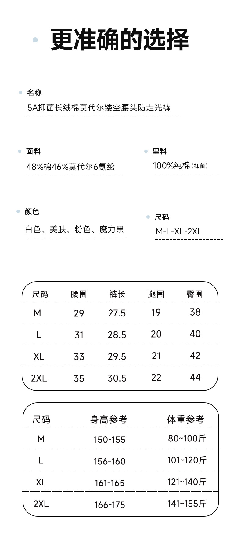 | Forro de entrepierna inferior | Todo el algodón |