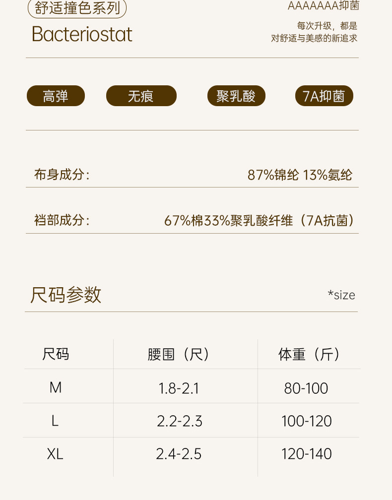 | Composición del forro de la entrepierna | Algodón |