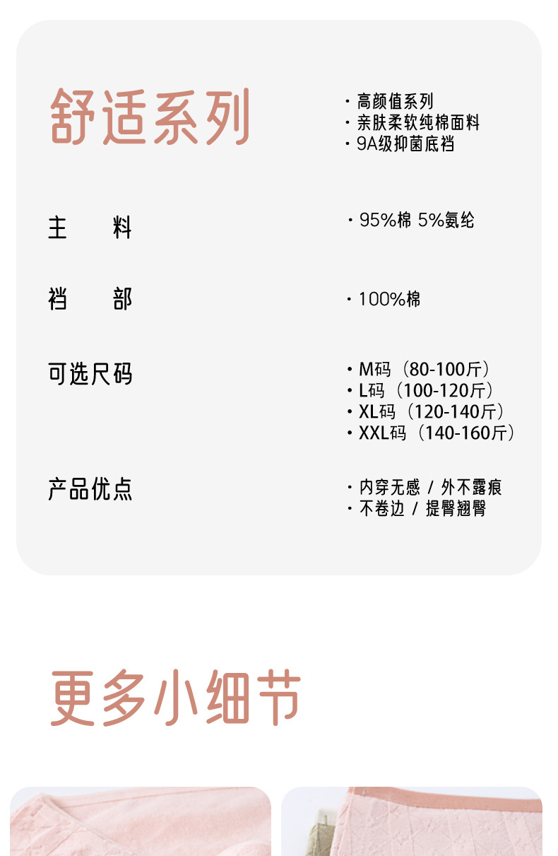 | Composición del forro de la entrepierna | Algodón |