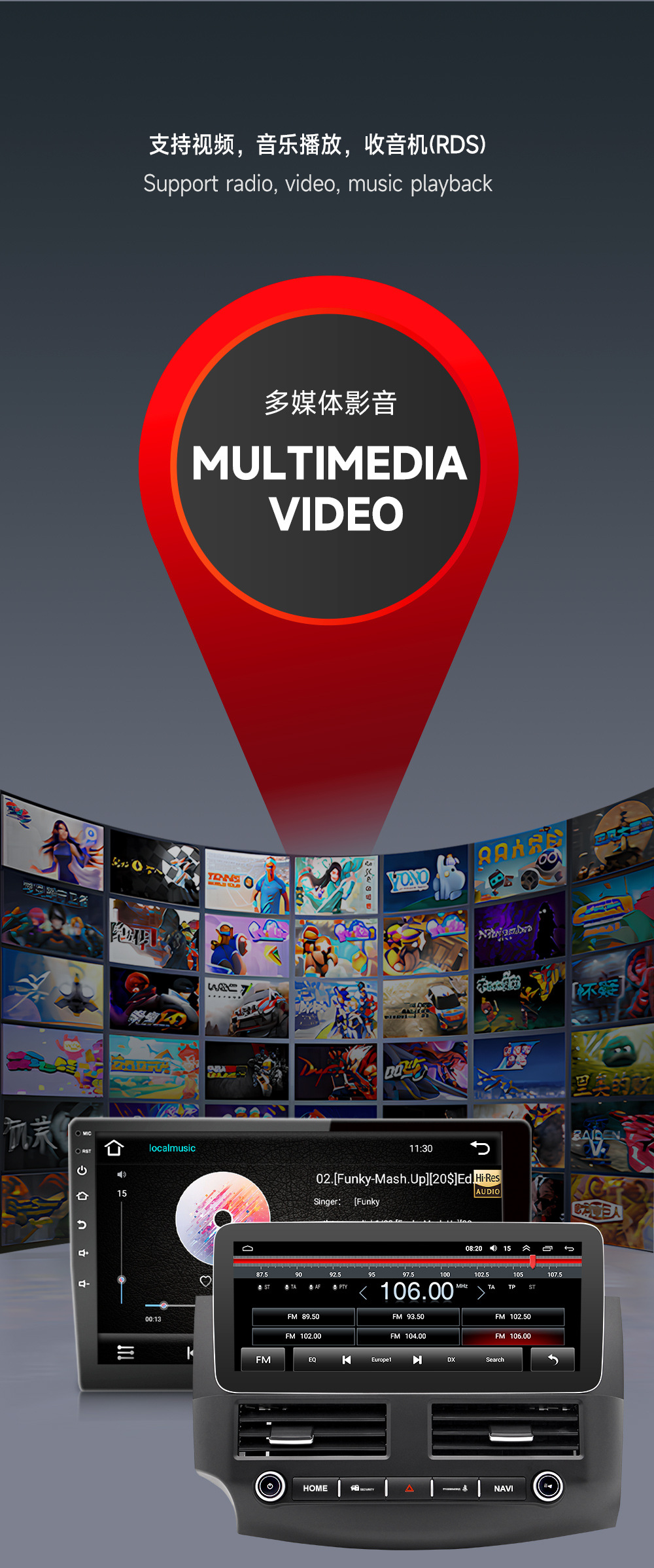 Amplificador de potencia DSP de pantalla grande de Android Instalación no destructiva Amplificador de potencia digital modificado en automóvil de alta potencia para mejorar la calidad del sonido HIFI