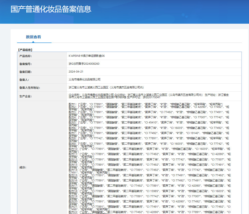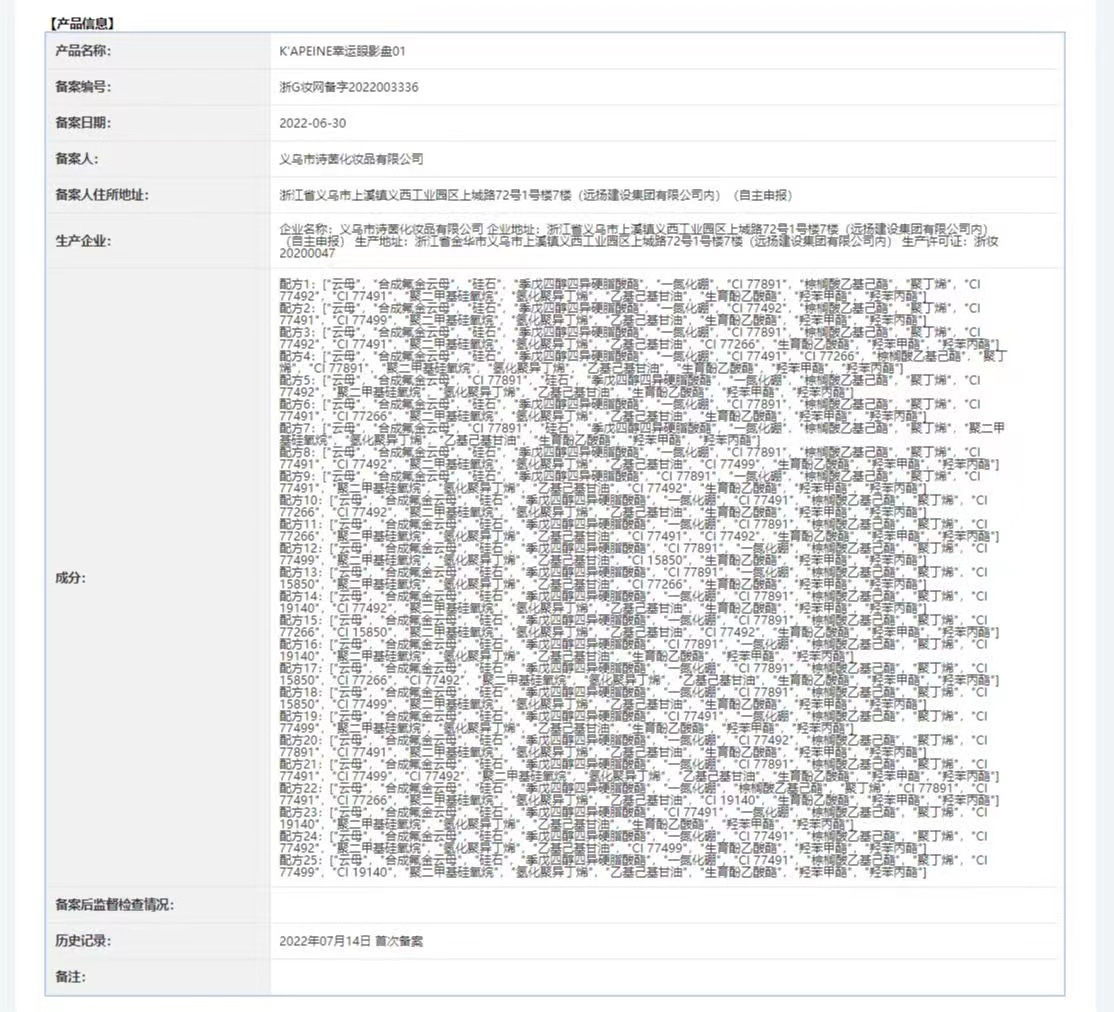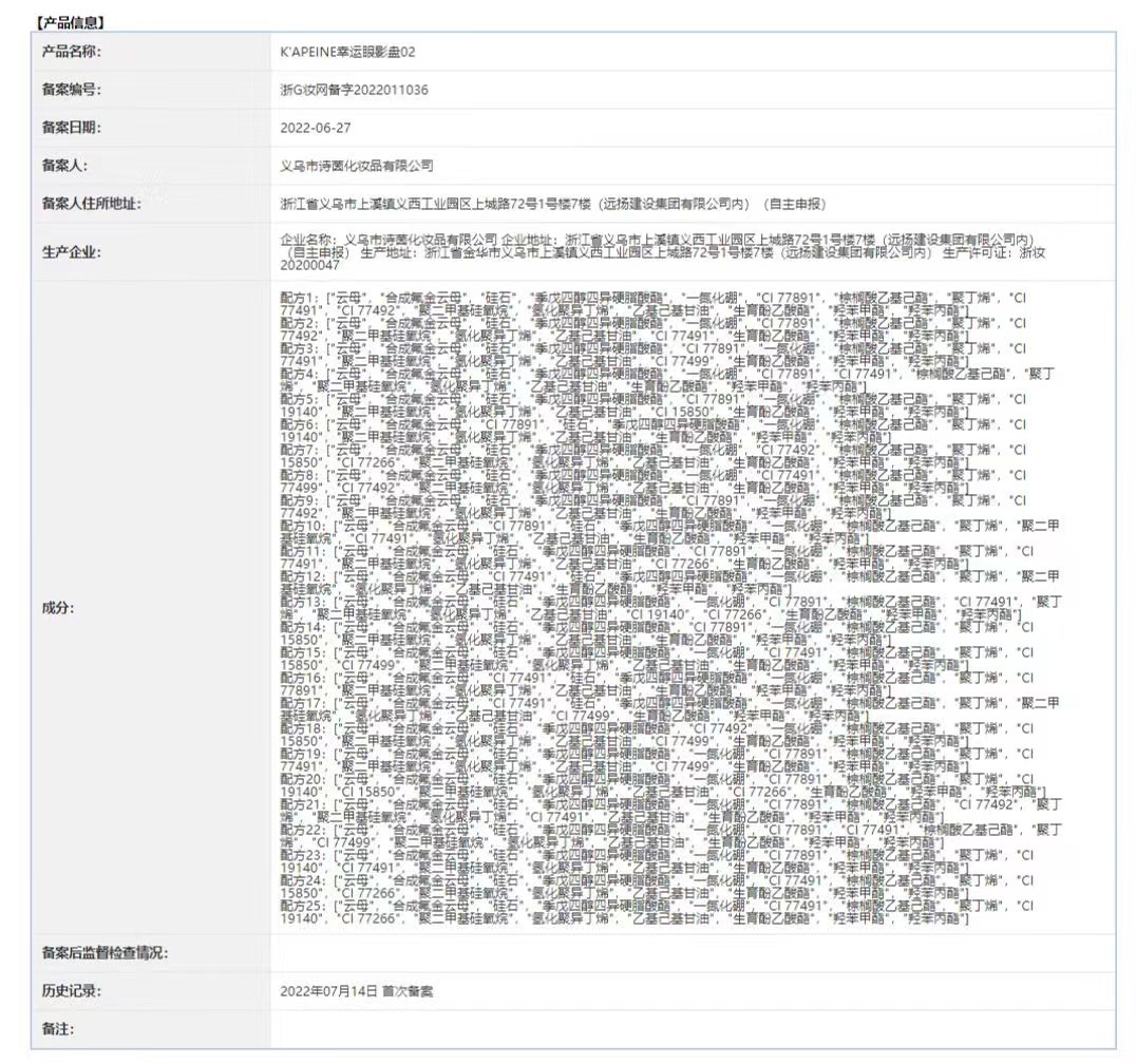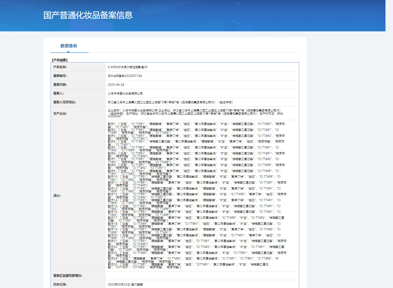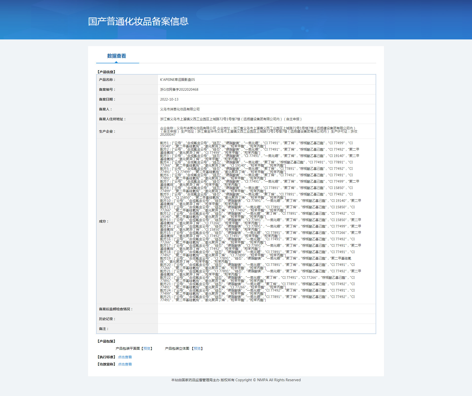 | Número de certificado de registro de cosméticos no especiales | Zhejiang G Makeup Network prepara palabras 2019016305 |