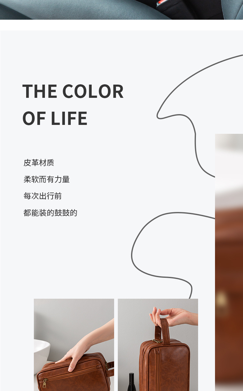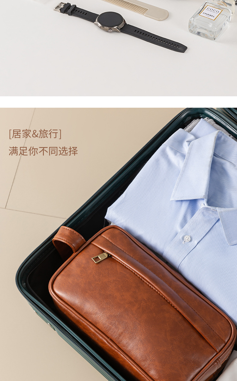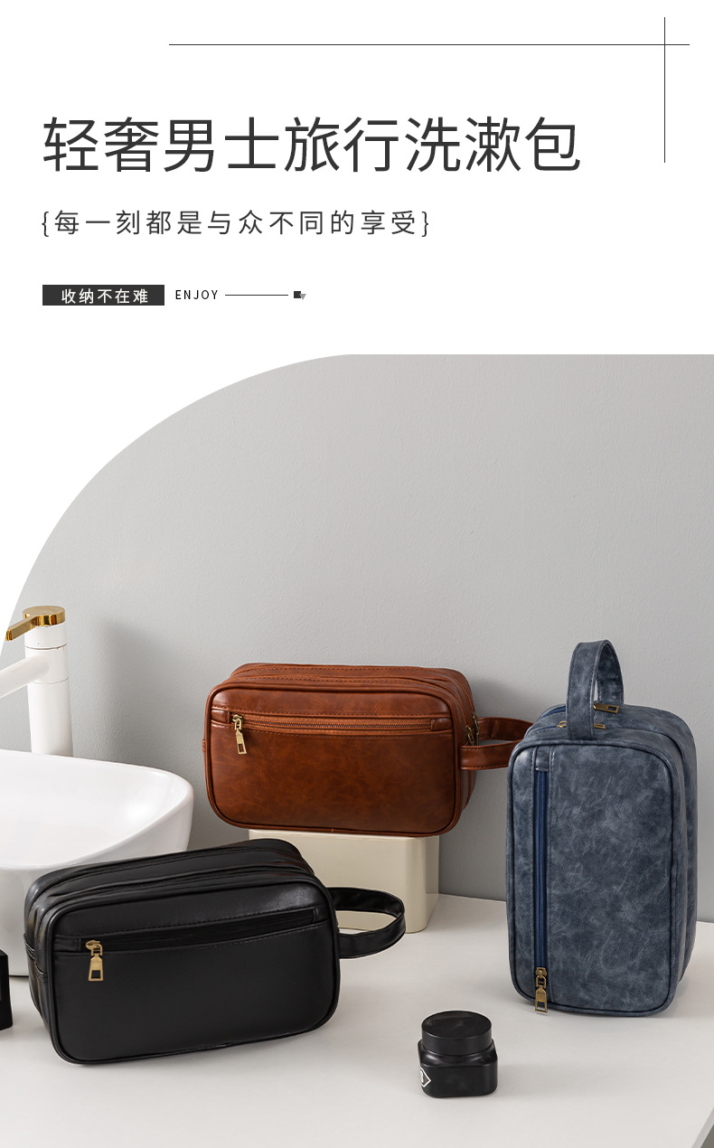 | Colores | Paquete de lavado doble PU marrón,Paquete de lavado de doble capa PU azul,Bolsa de lavado de doble capa PU negro |