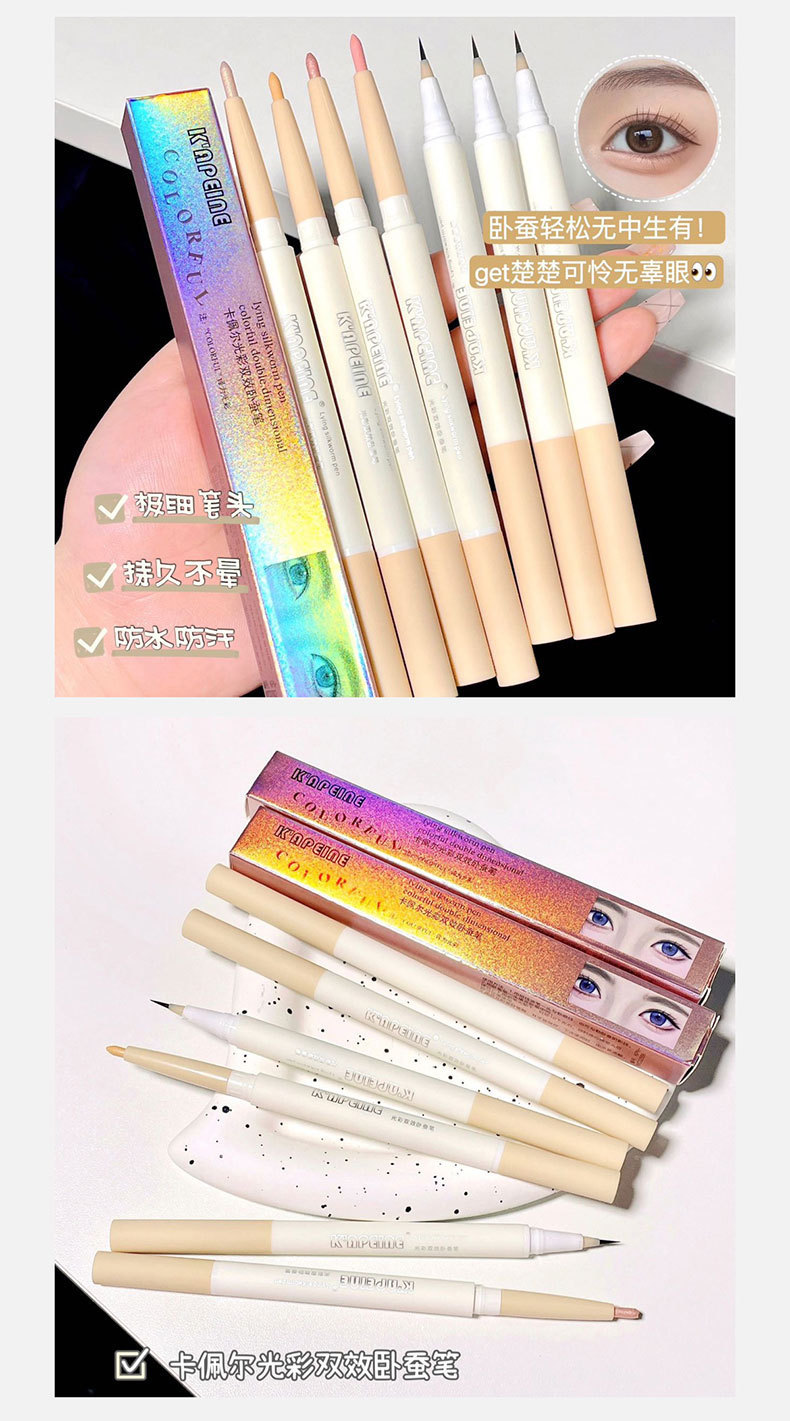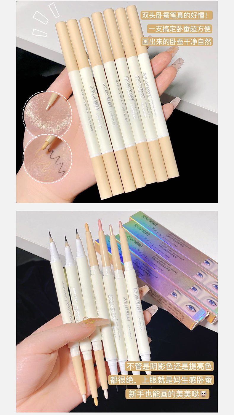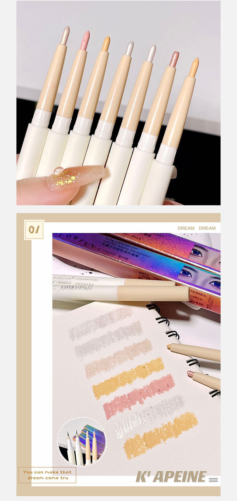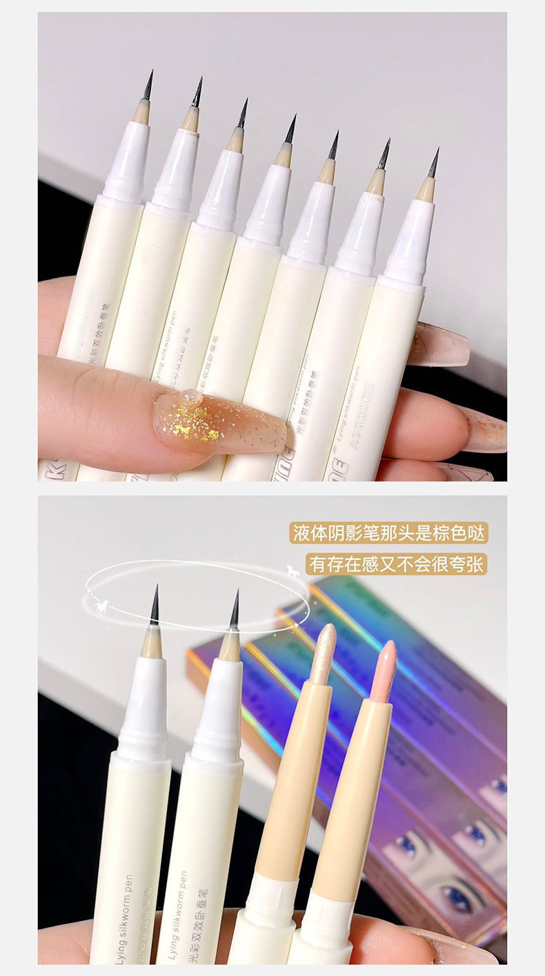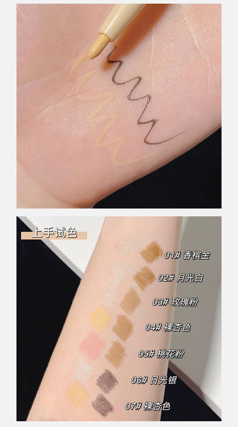 | Clasificación del color | 01 # Champagne Gold + Brown mintiendo la pluma del gusano de seda,02 # Moonlight blanco + marrón mentira pluma de gusano de seda,05 # melocotón Rosa + marrón mentira pluma de gusano de seda,06 # Luna plata + Eyeliner negro,07 # albaricoque desnudo + delineador de ojos negro |