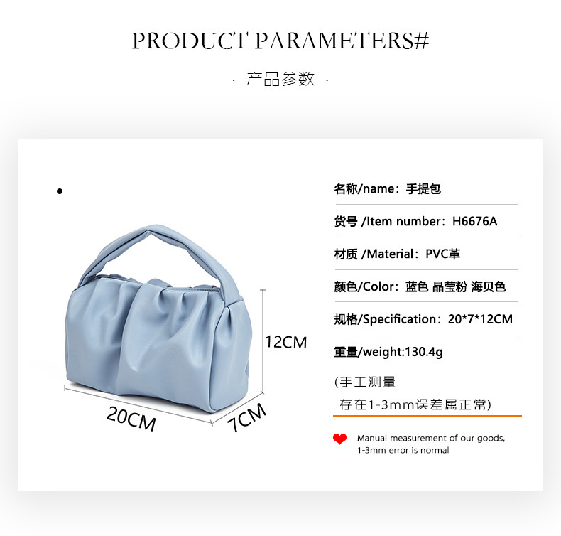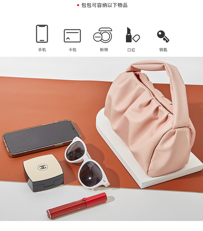 Bolso de nube simple japonés, textura ins, bolso de mujer de color sólido, moda, bolso de mano de celebridad de Internet, bolso de cosméticos
