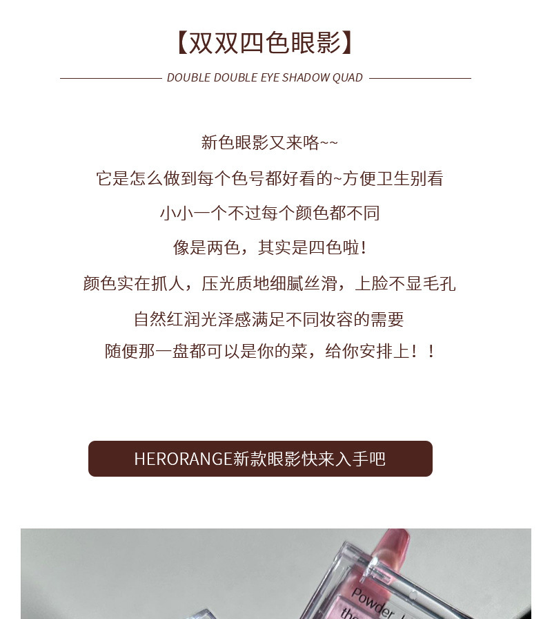 | Número de artículo | HR412 # paleta de sombras de ojos de cuatro colores |
