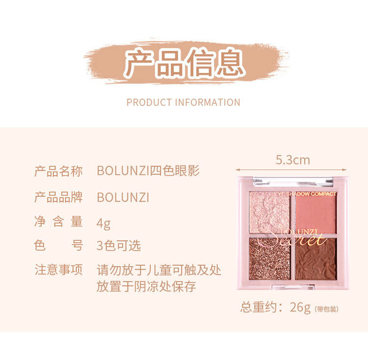 | Nombre del producto | Sombra de ojos de cuatro colores BOLUNZI |