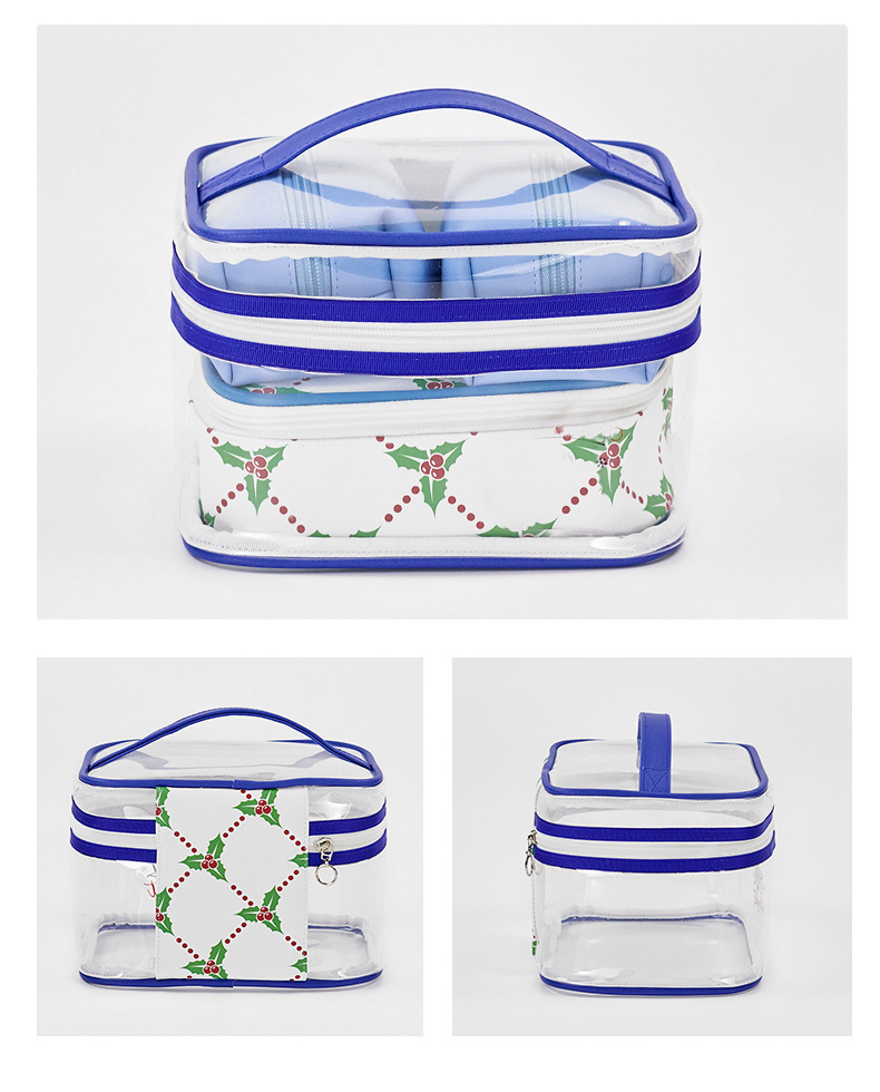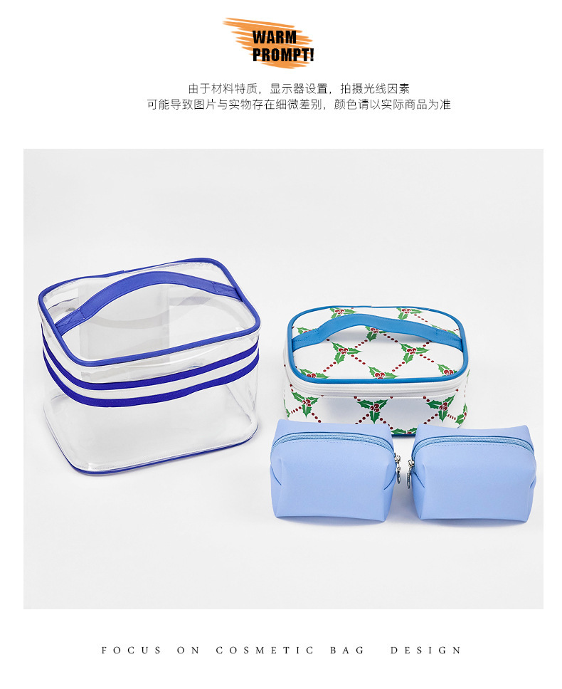 Suministro directo de fábrica material de pvc bolsa de almacenamiento multifuncional bolsa de cosméticos bolsa de ropa transparente de tres piezas