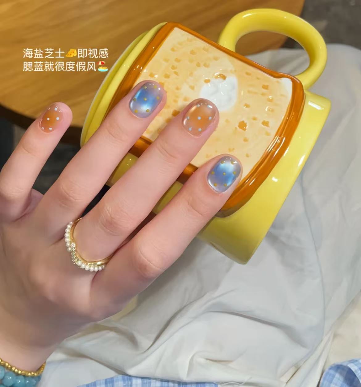 [Queso de sal marina] Estilo AB azul y amarillo con ojos de gato de lunares de Kluli, armadura de pato mandarín hecha a mano