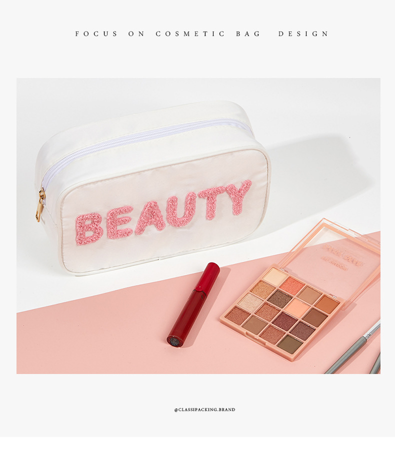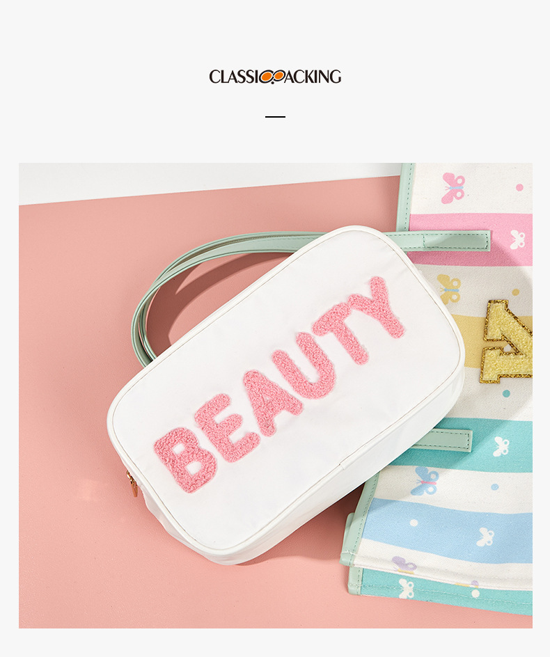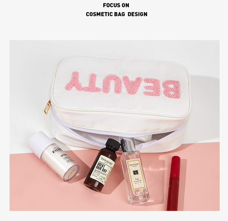 Bolsa de cosméticos para el corazón de la niña japonesa, bolsa de almacenamiento para el cuidado de la piel de gran capacidad, bolsa de lavado portátil de viaje con logo bordado impreso