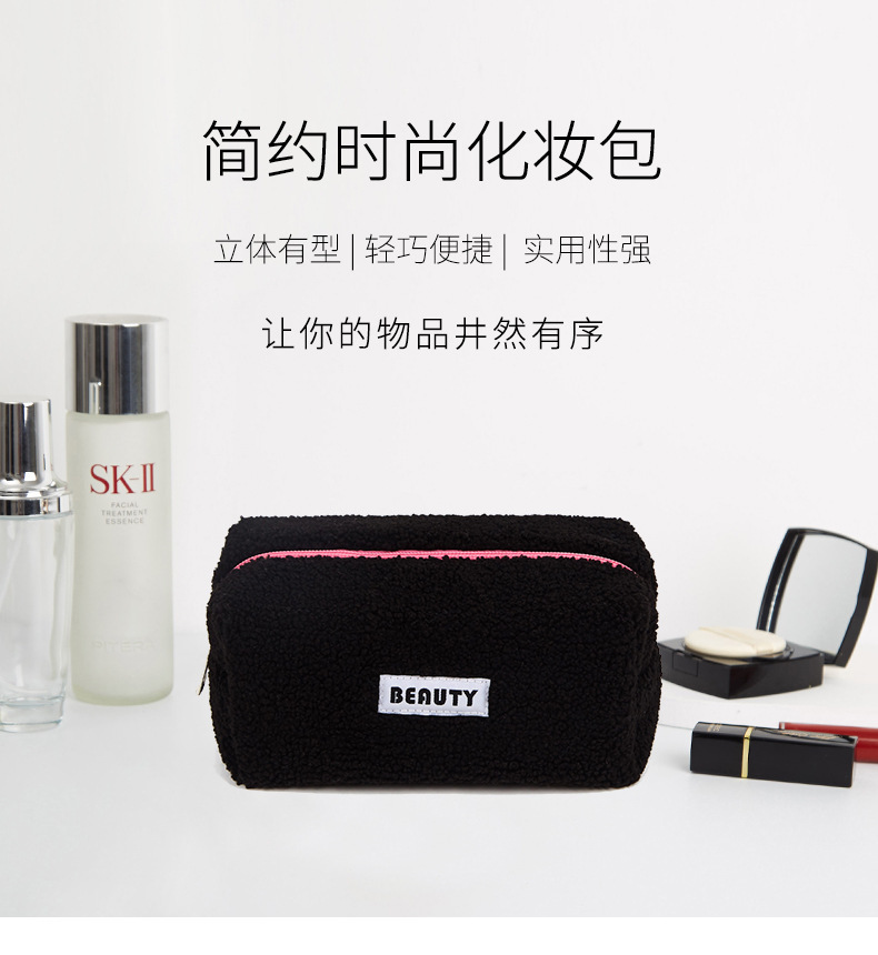 Bolso de felpa de diseño original del fabricante, bolsa de almacenamiento de productos portátiles para el cuidado de la piel de gran capacidad, bolsa de cosméticos nueva 2025