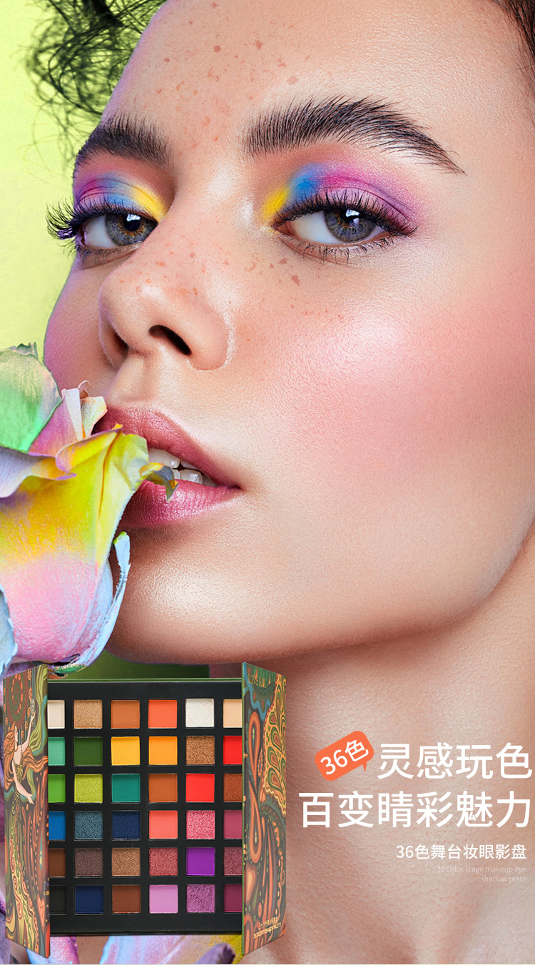 HDKT Douyin Explosity 36 colores Almighty Eyeshadow Actuación en el escenario Maquillaje diario Fino destello de alto brillo mate ahumado estilo europeo y americano
