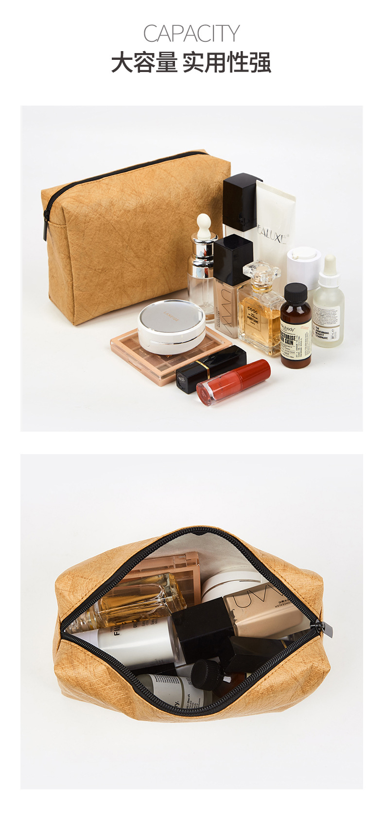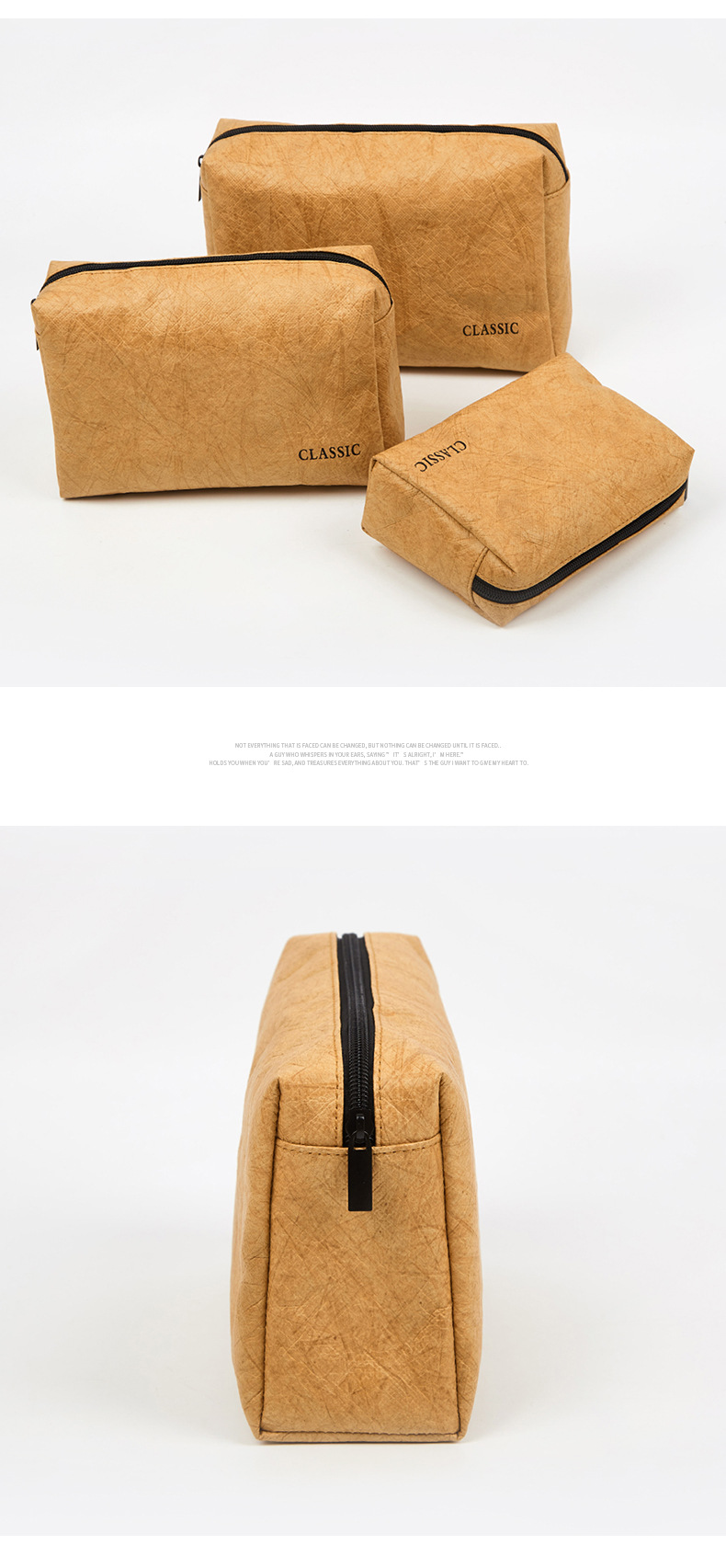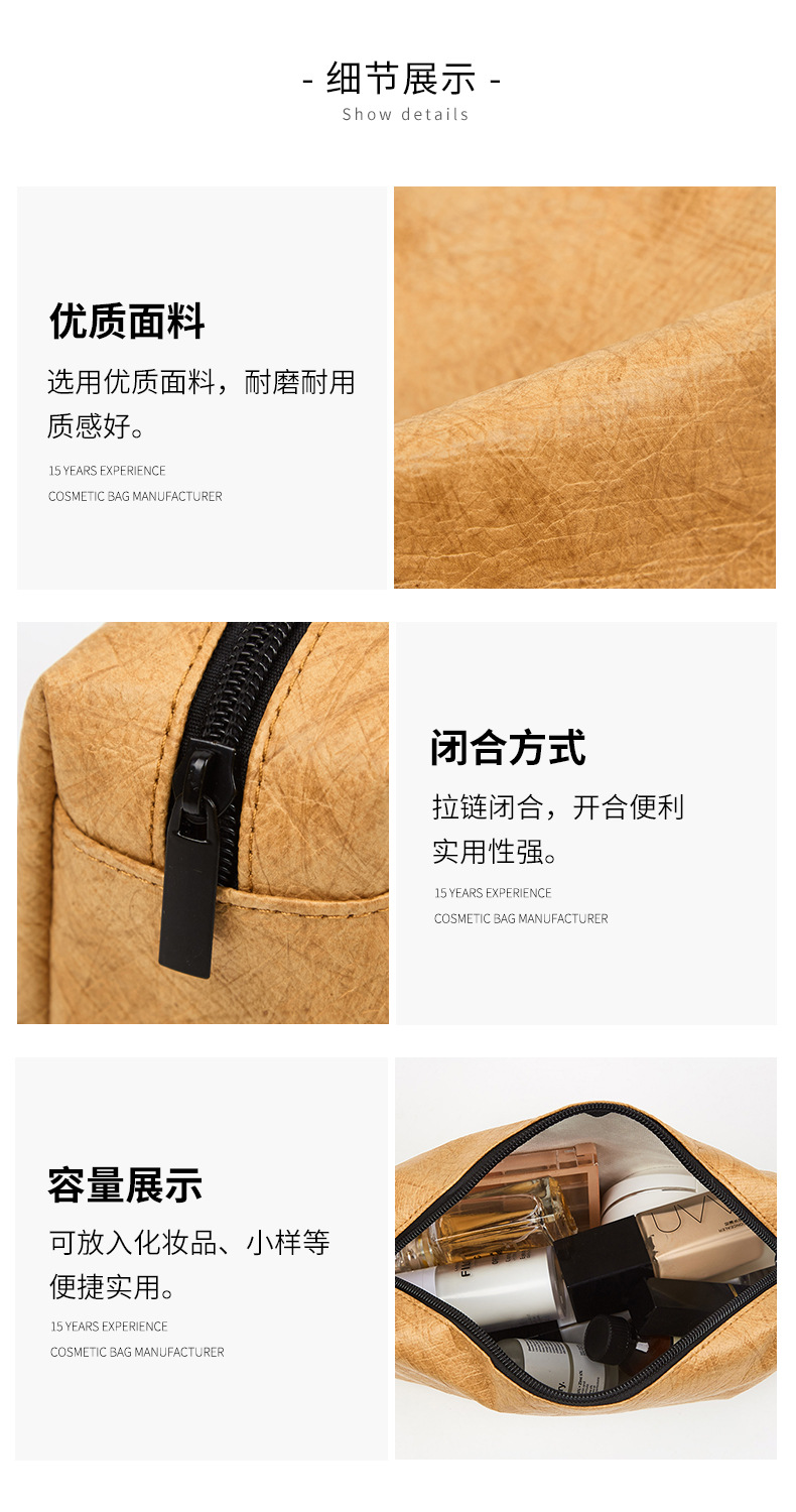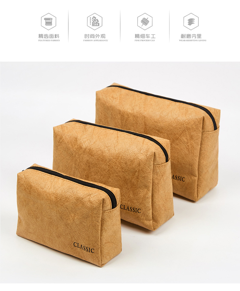 Bolsa de almacenamiento de papel DuPont de tres piezas al por mayor de fábrica Bolsa de cosméticos impermeable resistente al desgaste multifuncional simple con logotipo impreso