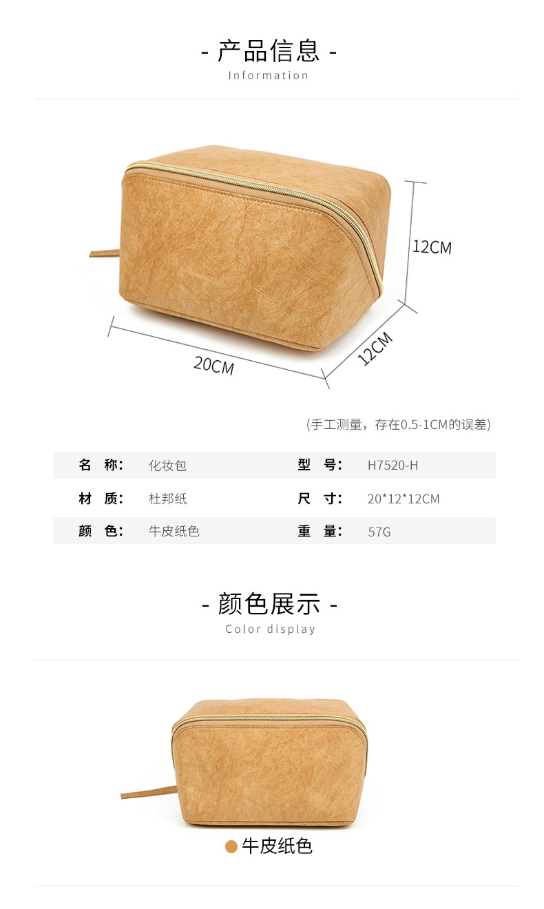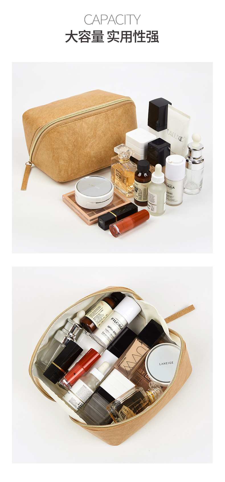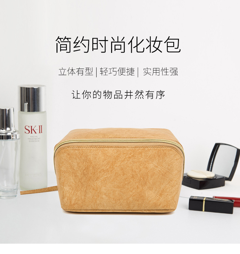 Bolsa de almacenamiento simple japonesa, bolsa de cosméticos de papel kraft ecológica, bolsa de lavado conveniente para viajes de negocios simples, se puede imprimir con logotipo