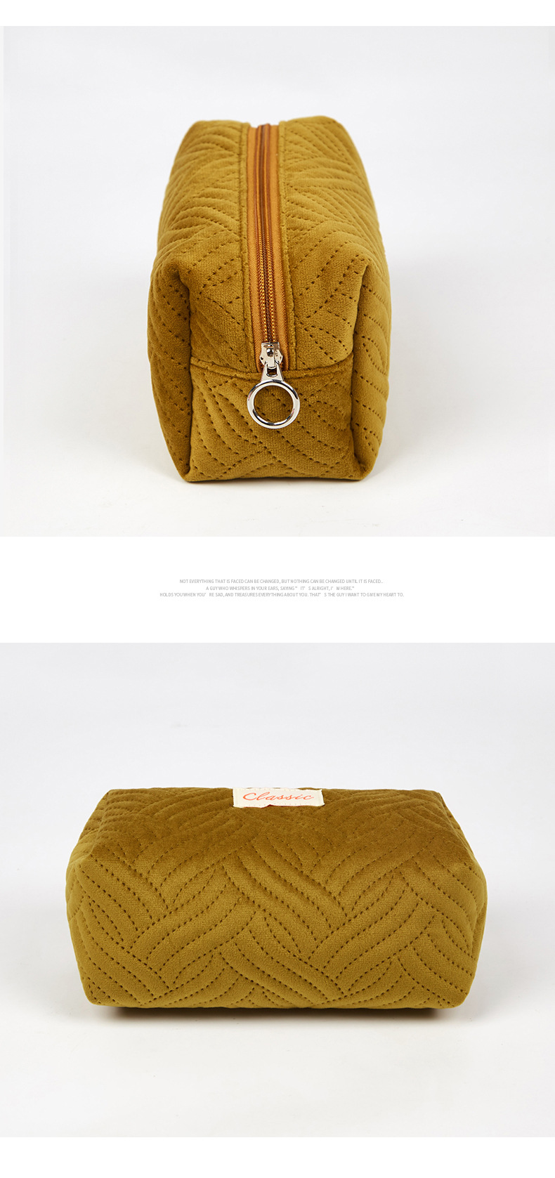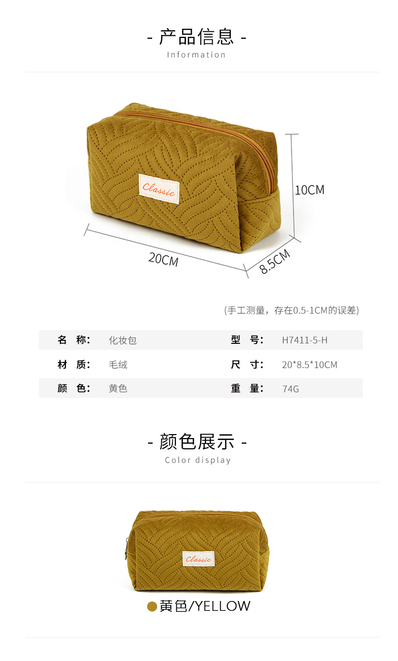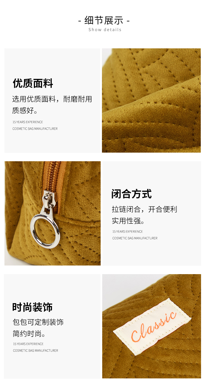 Bolsa de almacenamiento de cosméticos portátil coreano con logotipo impreso Bolsa de lavado de material de franela al por mayor de fábrica