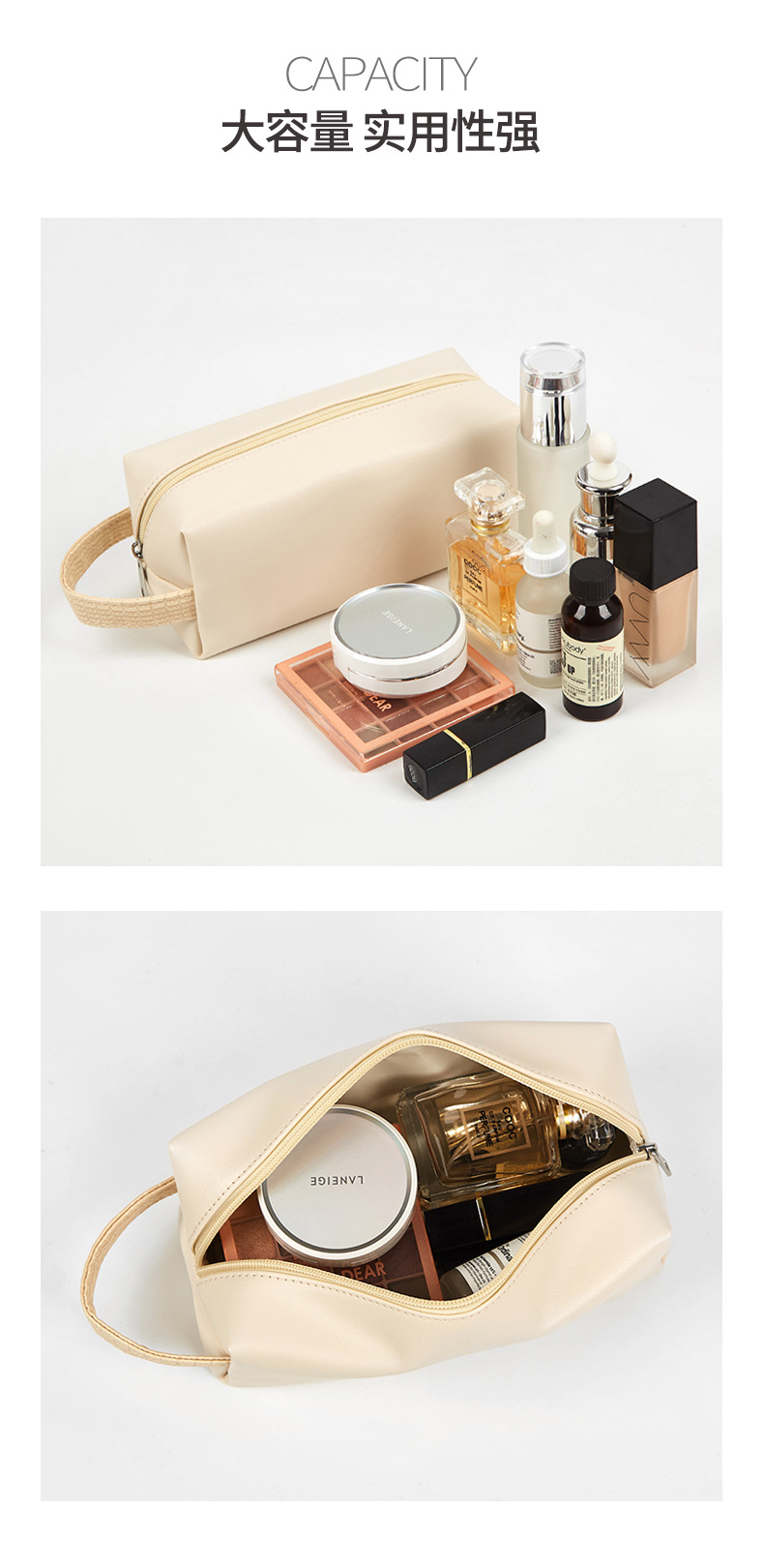 PU bolsa de cosméticos impermeable bolsa de lavado de nube de crema bolsa de cosméticos portátil de doble capa de gran capacidad y alto valor
