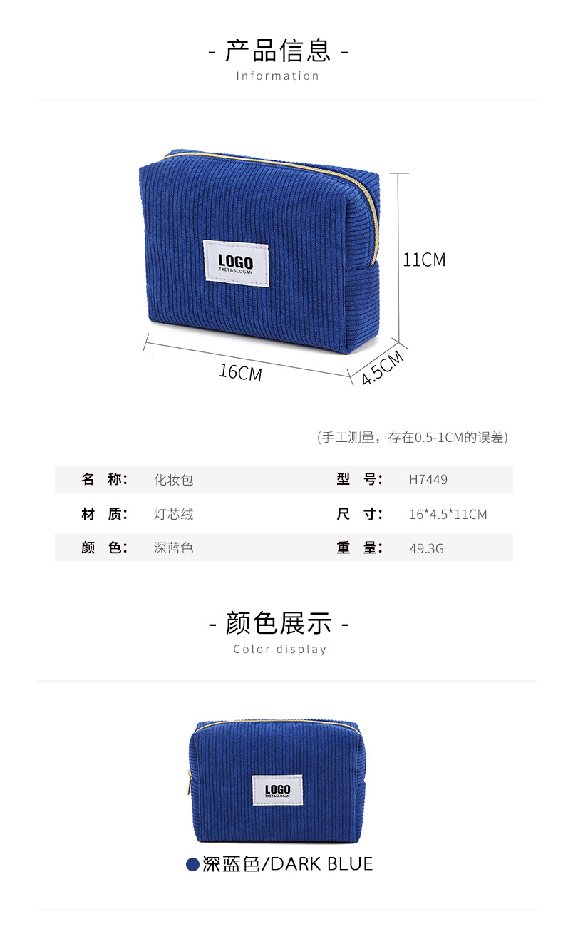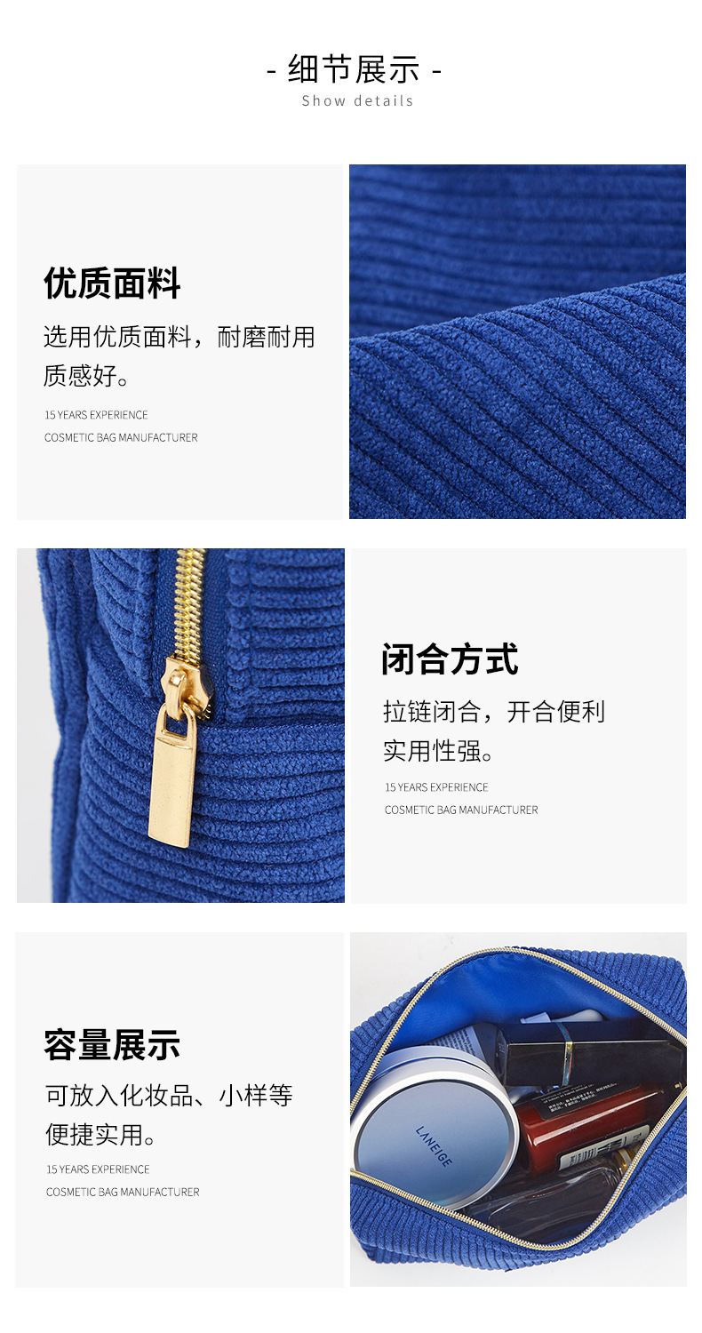Fabricante de diseño de bolsa de almacenamiento de pana logotipo simple moda rayas bolsa de cosméticos ins bolsa de almacenamiento súper caliente